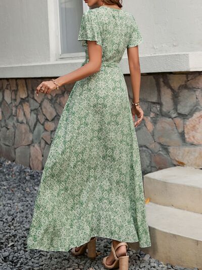 Printed Surplice Maxi Dress with Flutter Sleeves