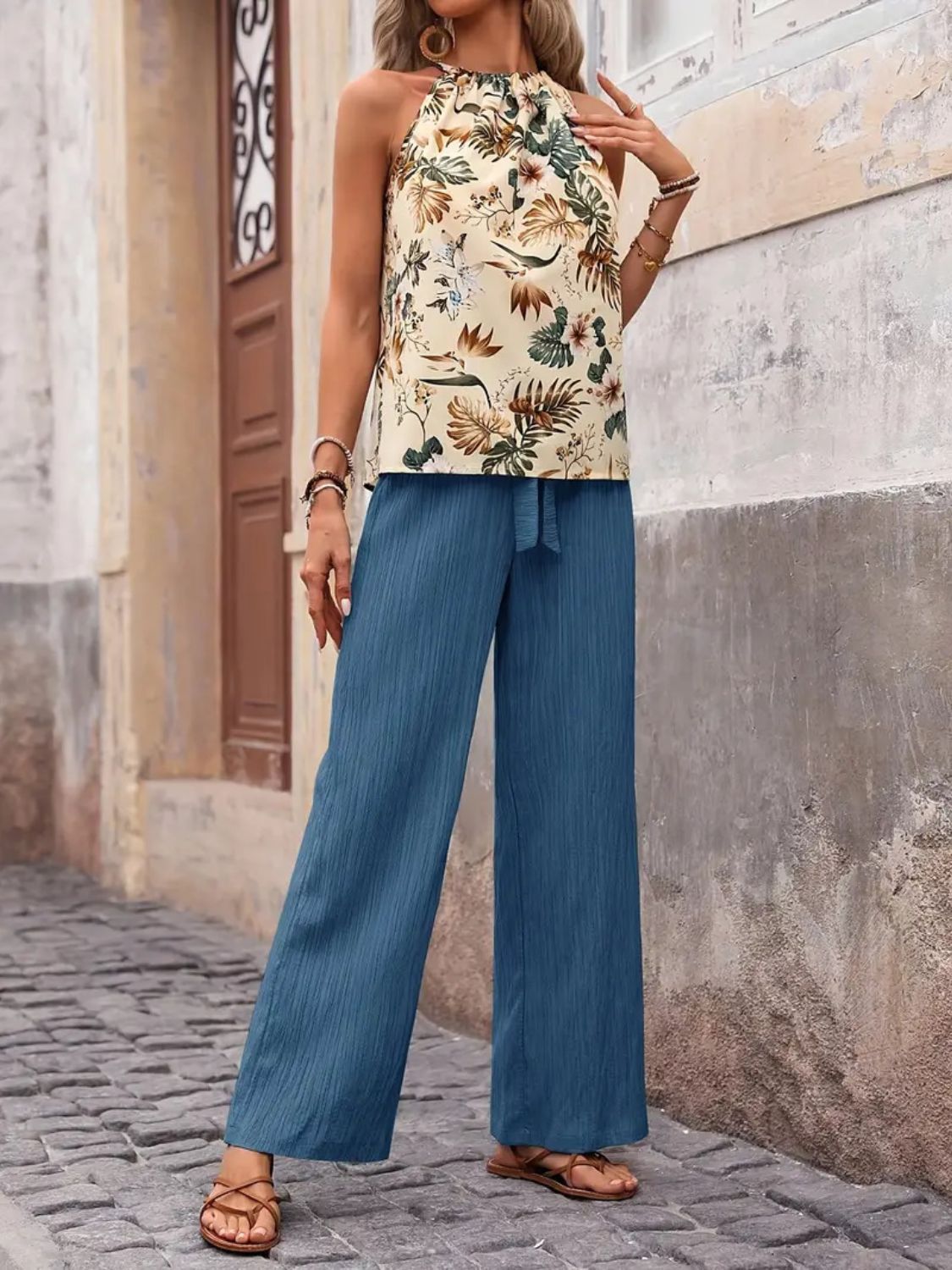 Printed Tank Top and Wide Leg Pants Set