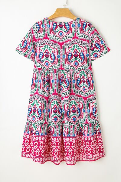 Printed Tie Neck Short Sleeve Dress