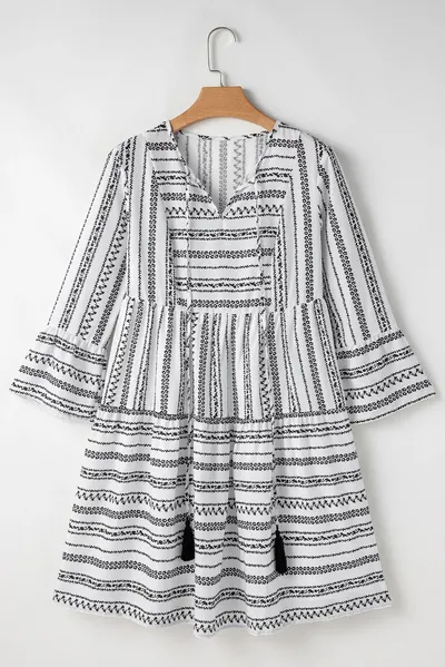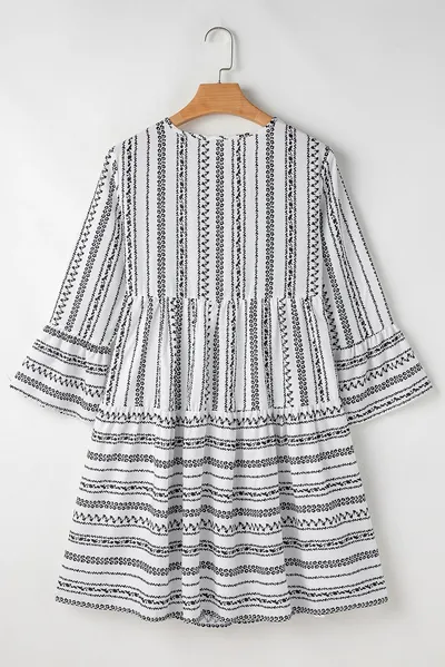 Printed Tie Neck Three-Quarter Sleeve Mini Dress