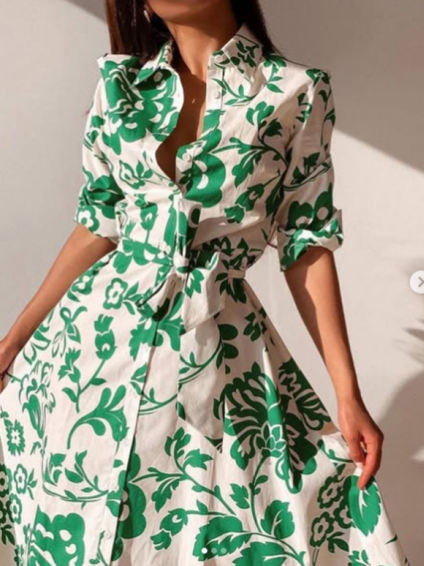 Printed Tie Waist Shirt Dress