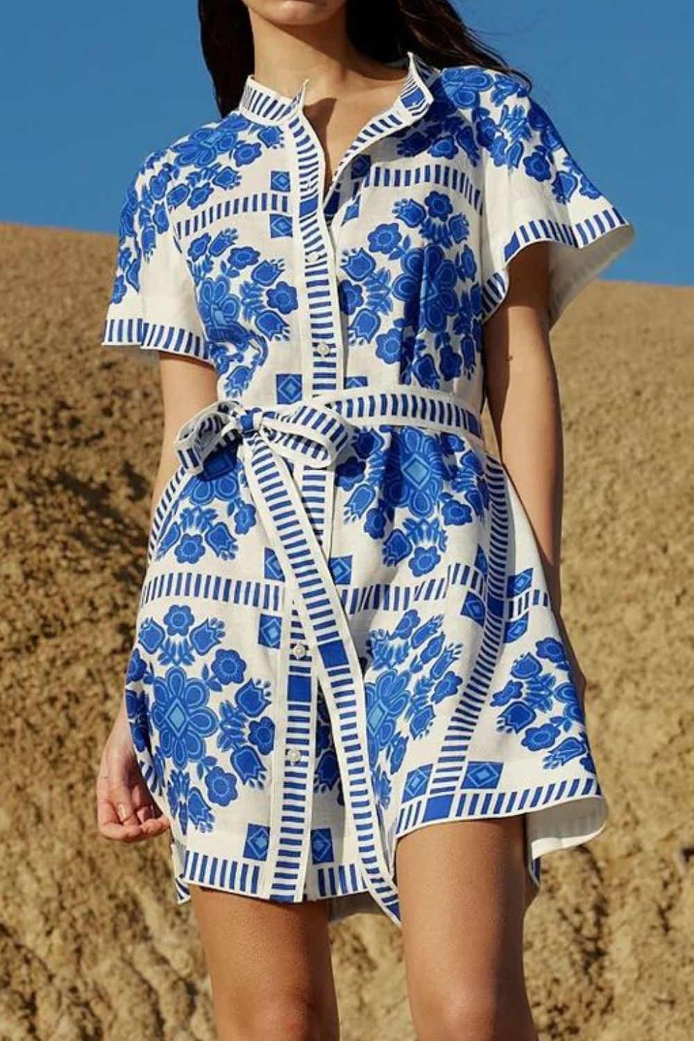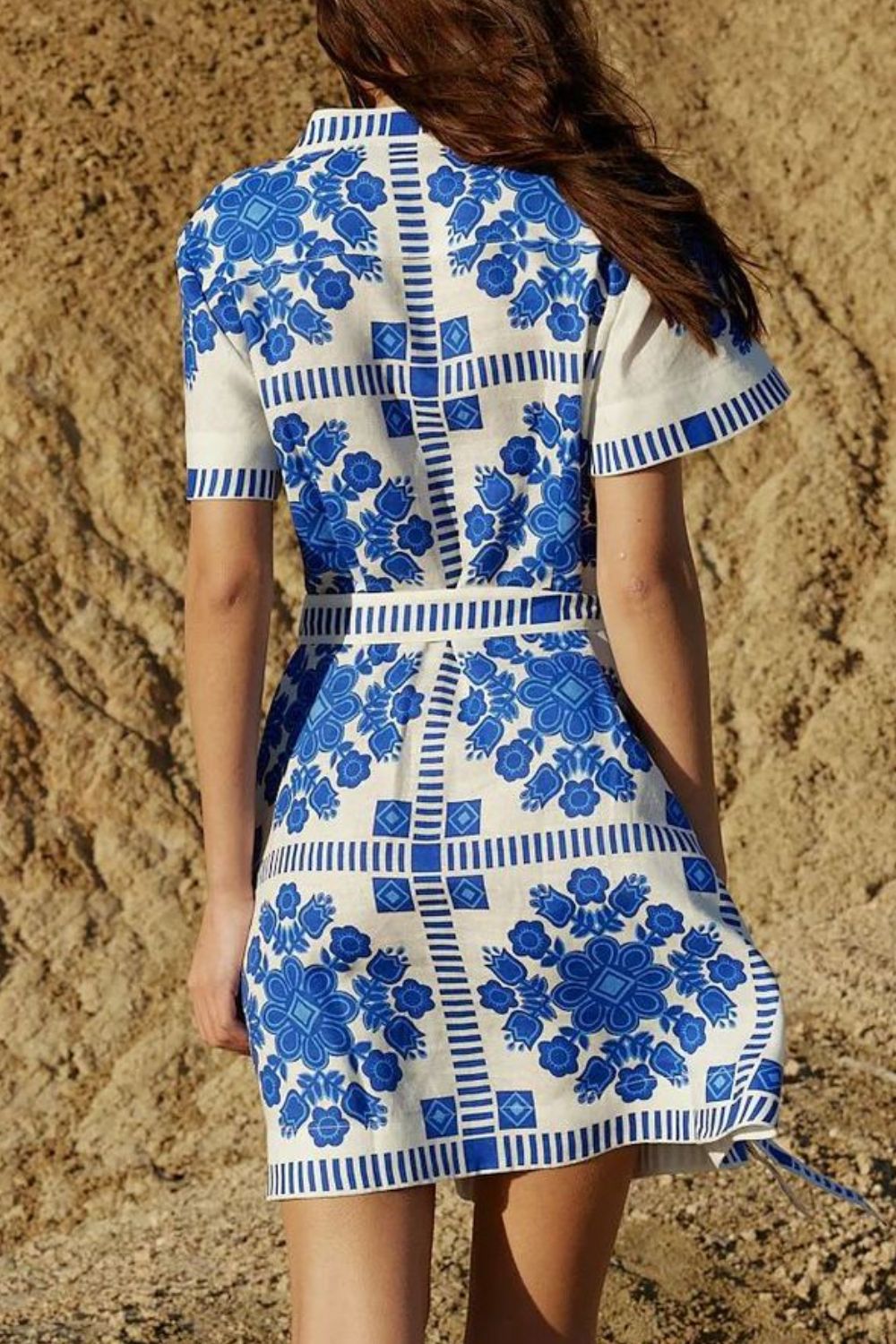 Printed Tie Waist Short Sleeve Dress