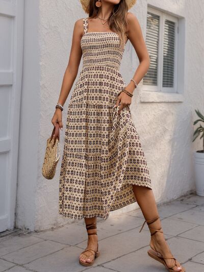 Printed Tiered Wide Strap Midi Dress