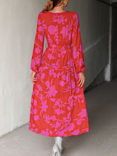 Printed V-Neck Balloon Sleeve Dress