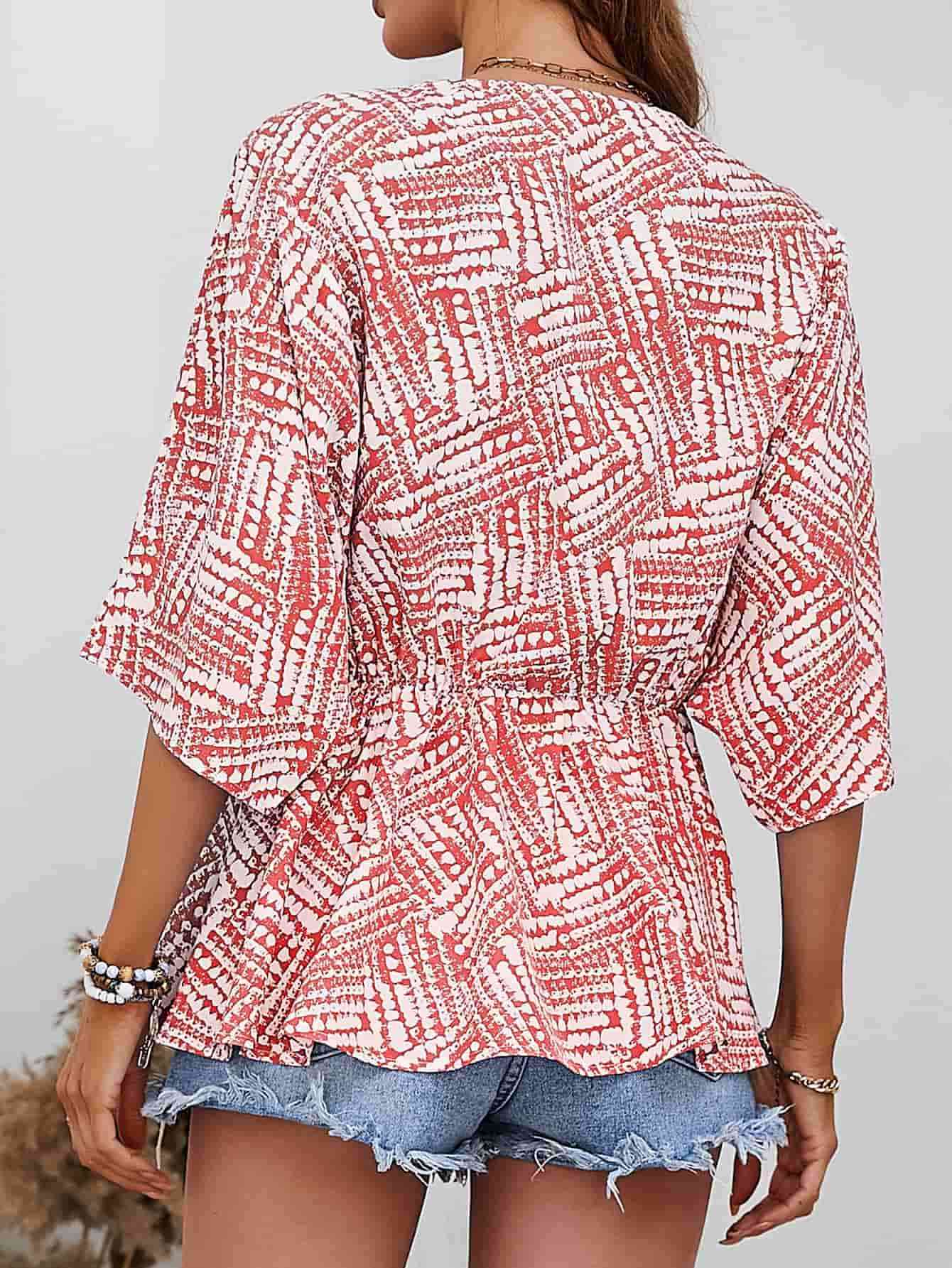Printed V-Neck Dolman Sleeve Blouse