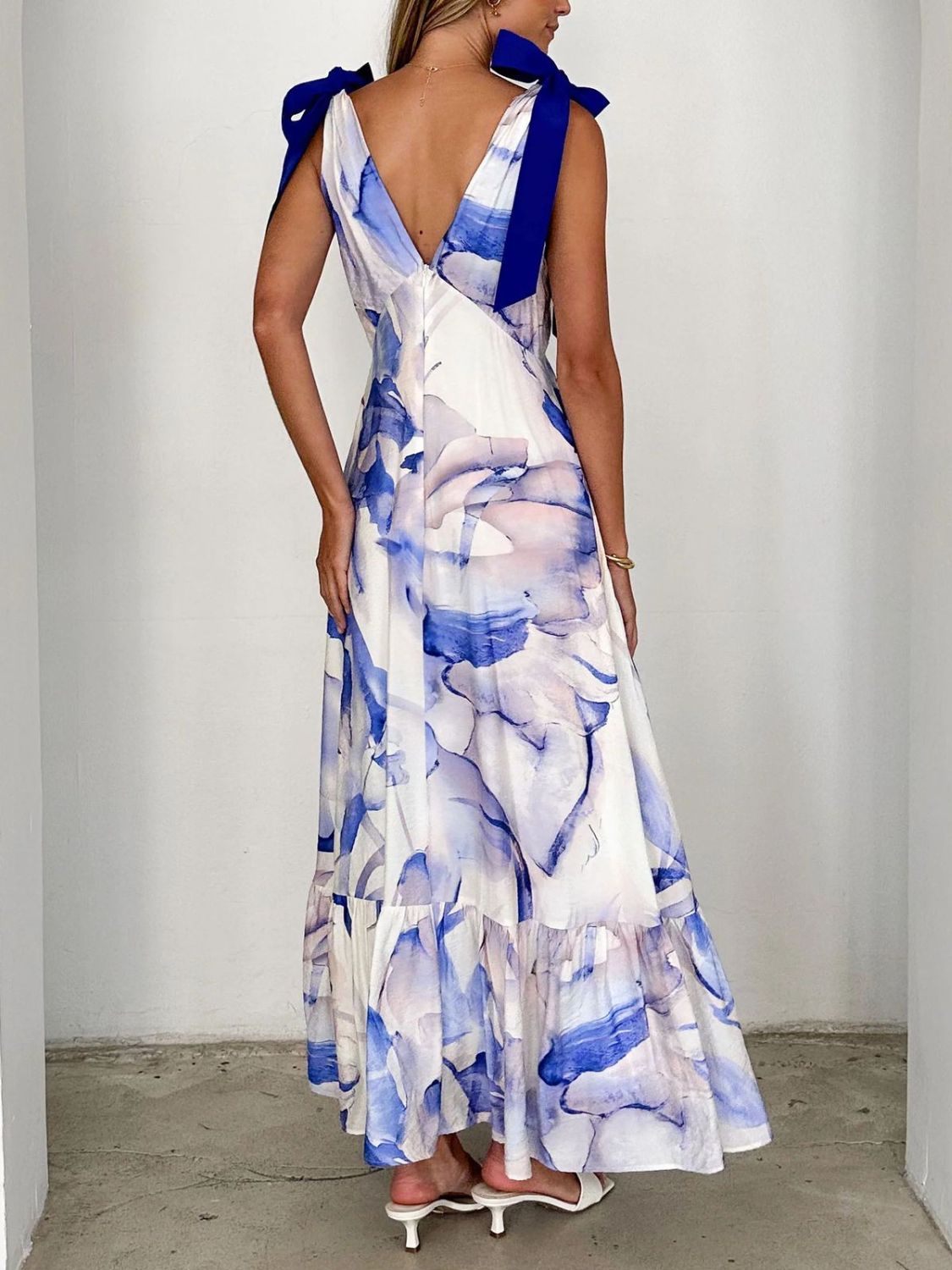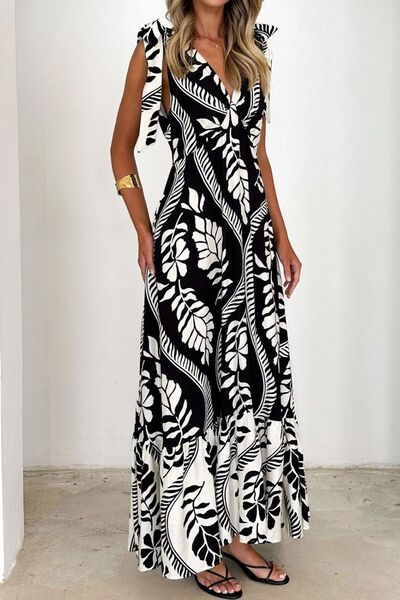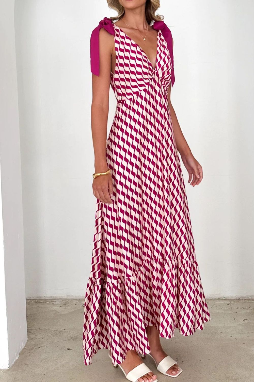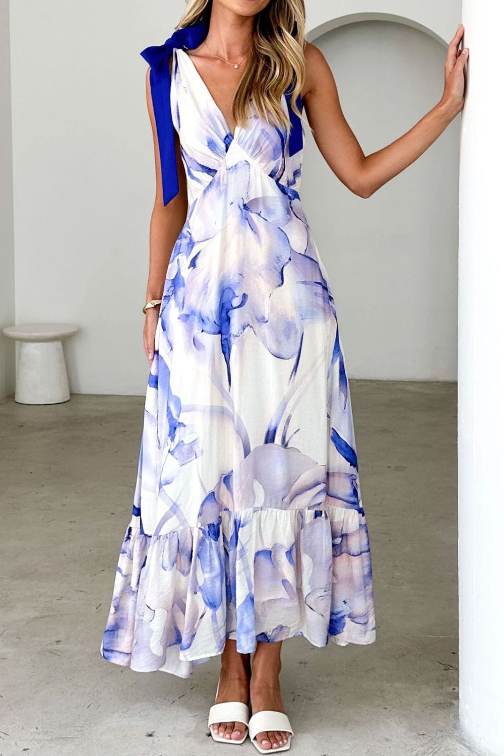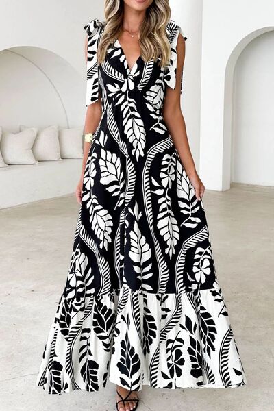 Printed V-Neck Tie Shoulder Midi Cami Dress