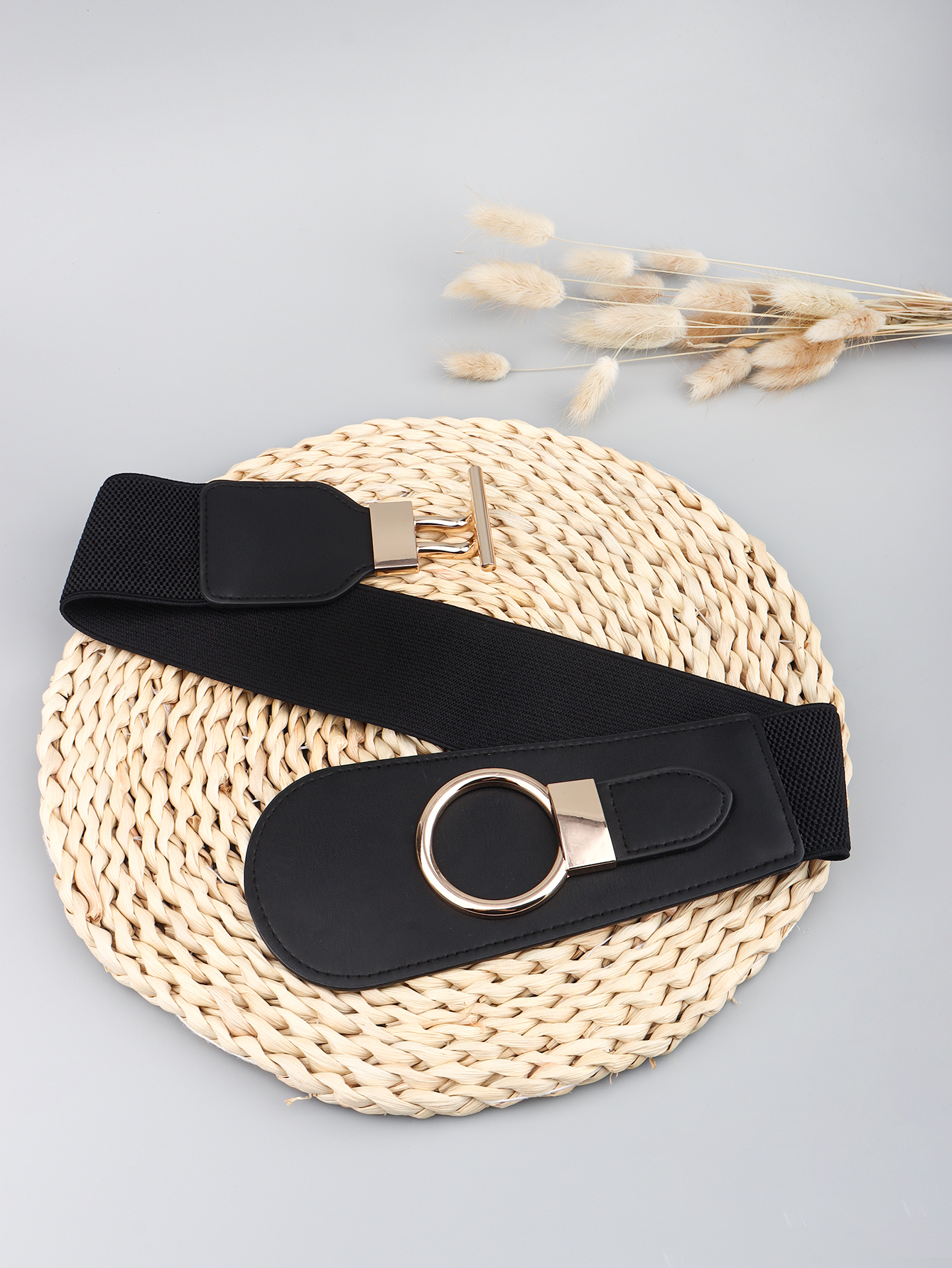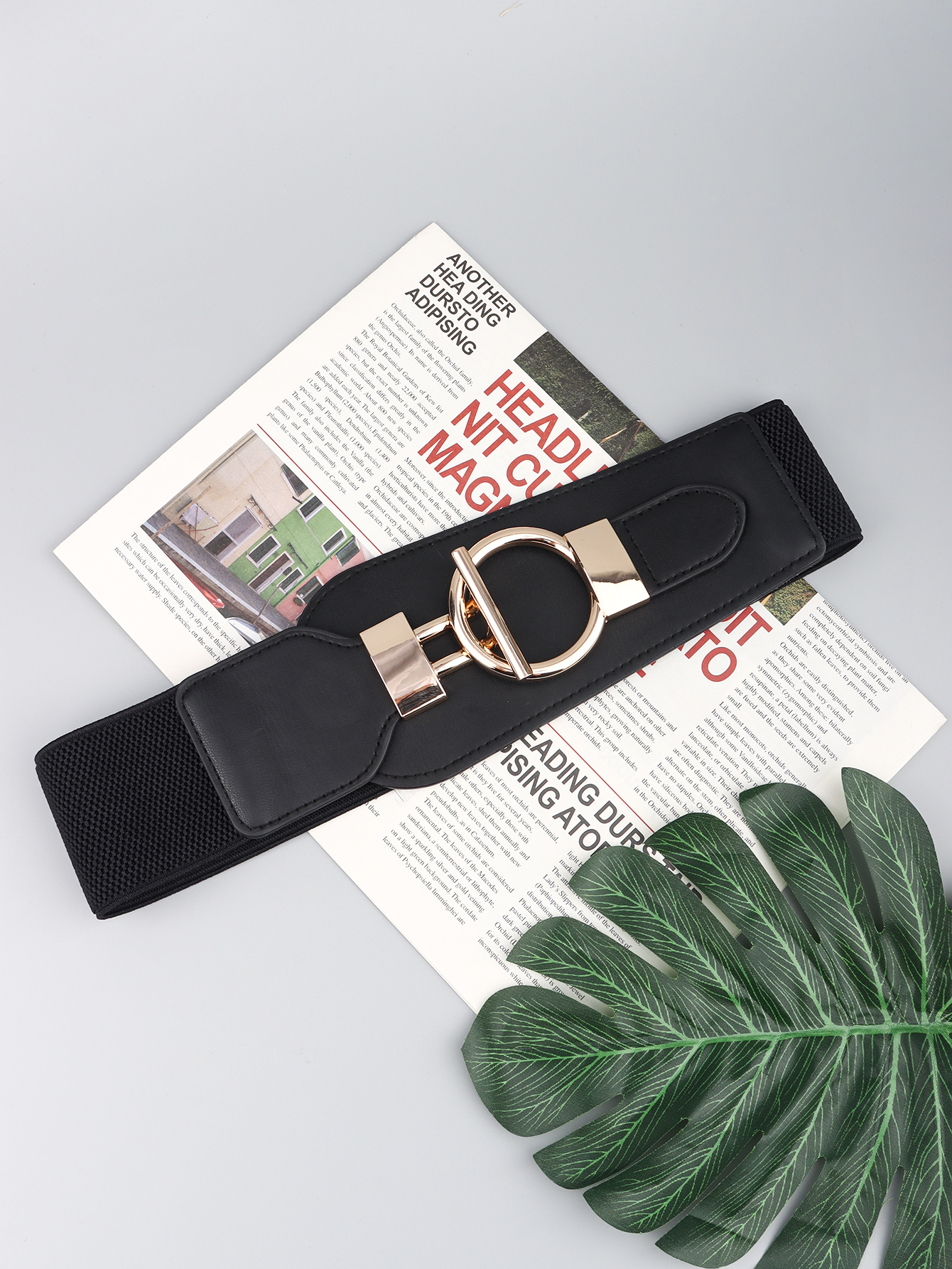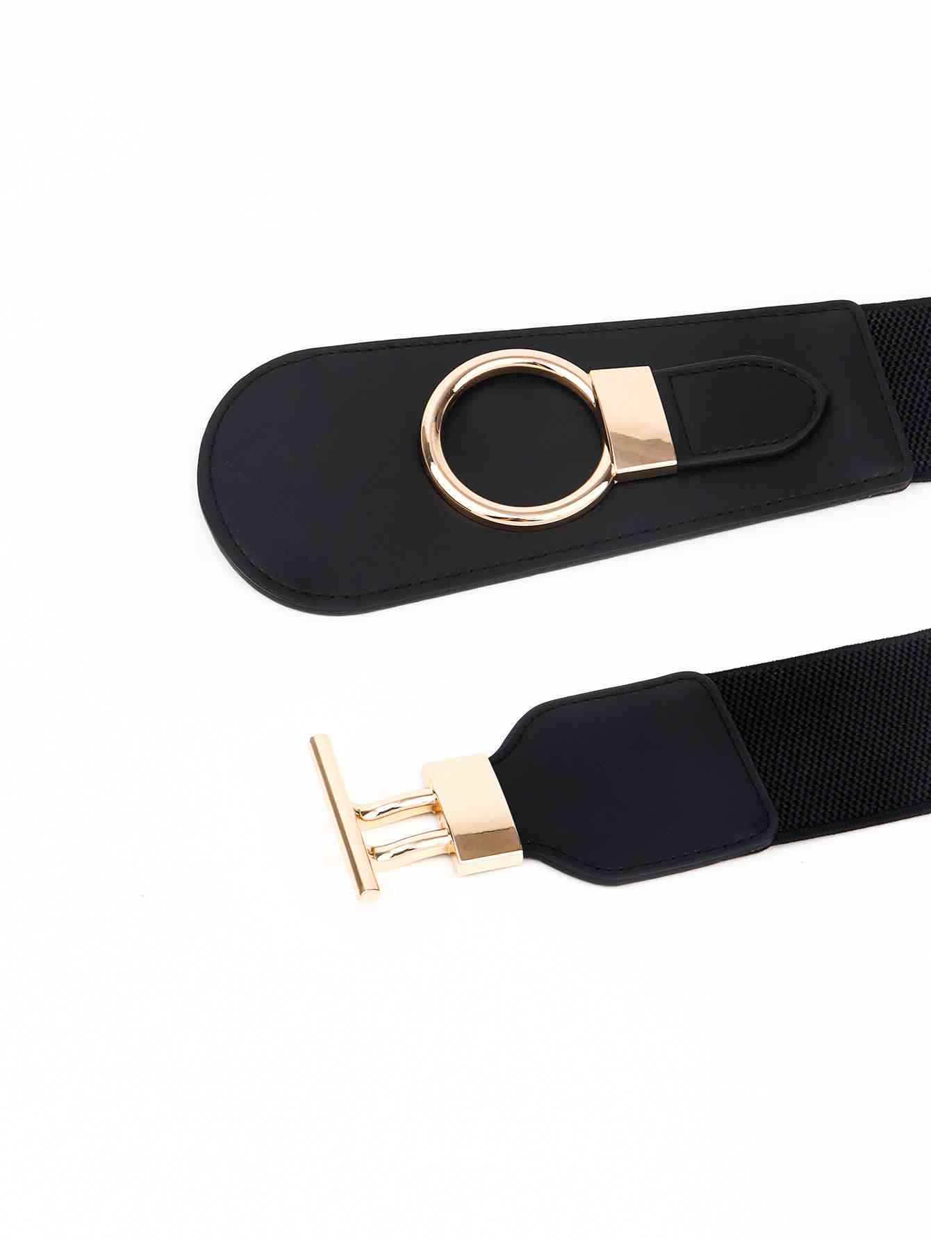 PU Elastic Wide Belt with Alloy Buckle