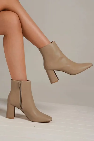 PU Leather Block Heel Boots with Side Zippers