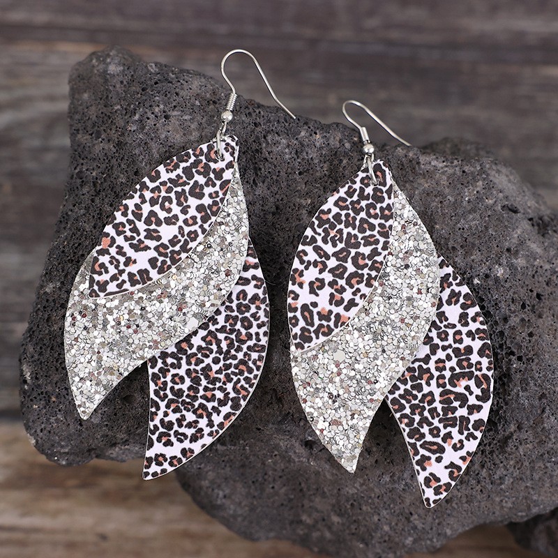 PU Leather Leopard Leaf Earrings