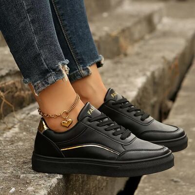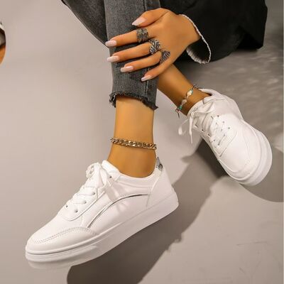 PU Leather Round Toe Flat Sneakers