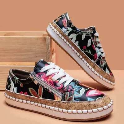PU Leather Round Toe Flats Sneakers
