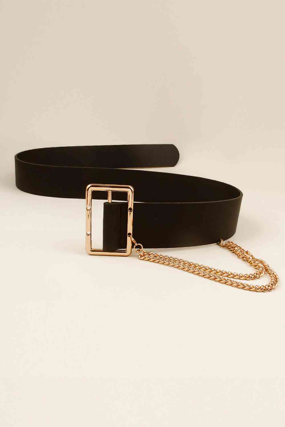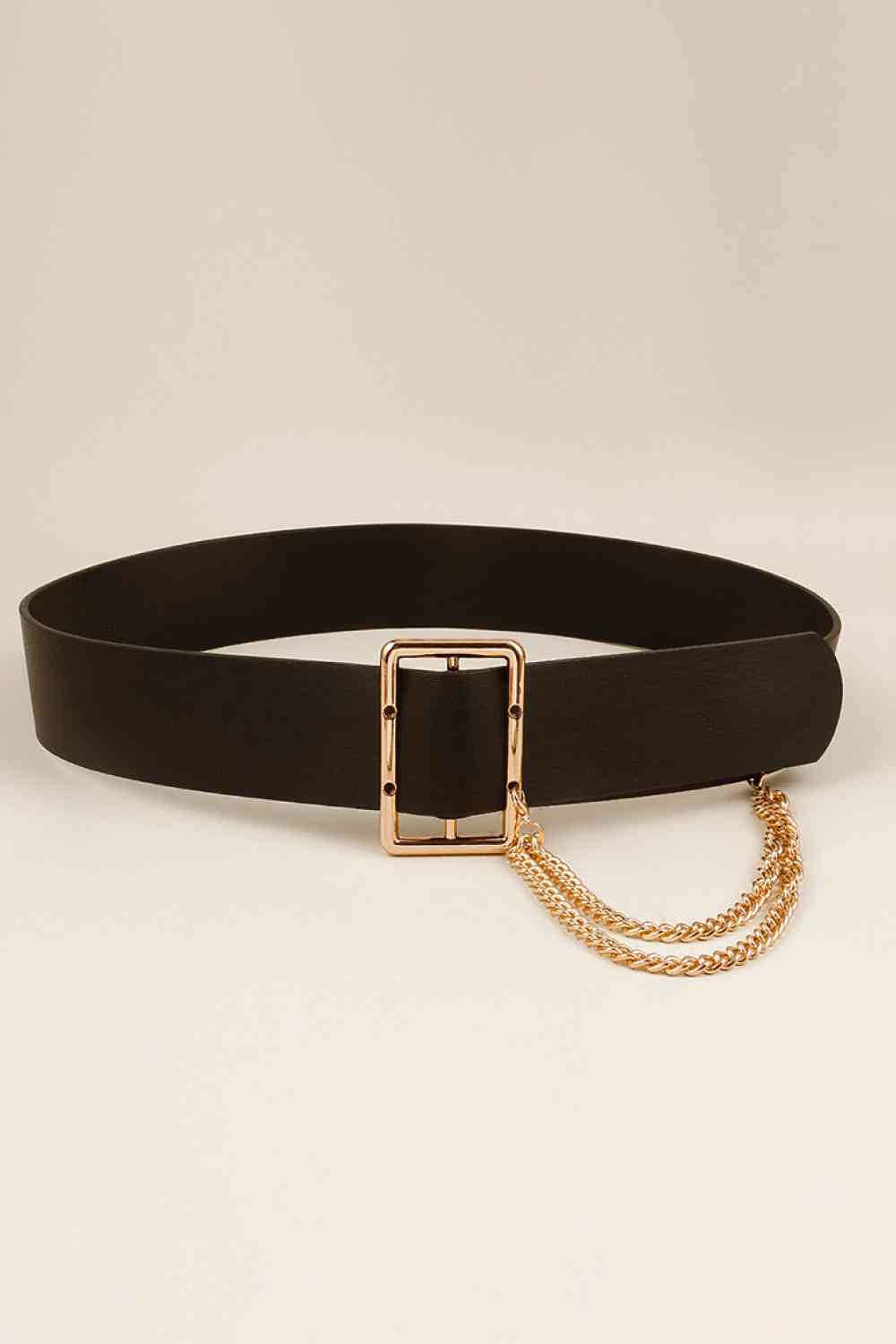 PU Leather Wide Belt with Chain