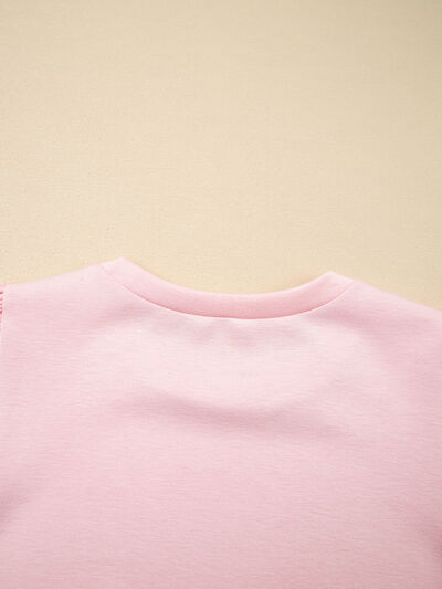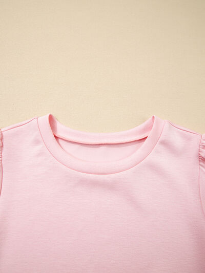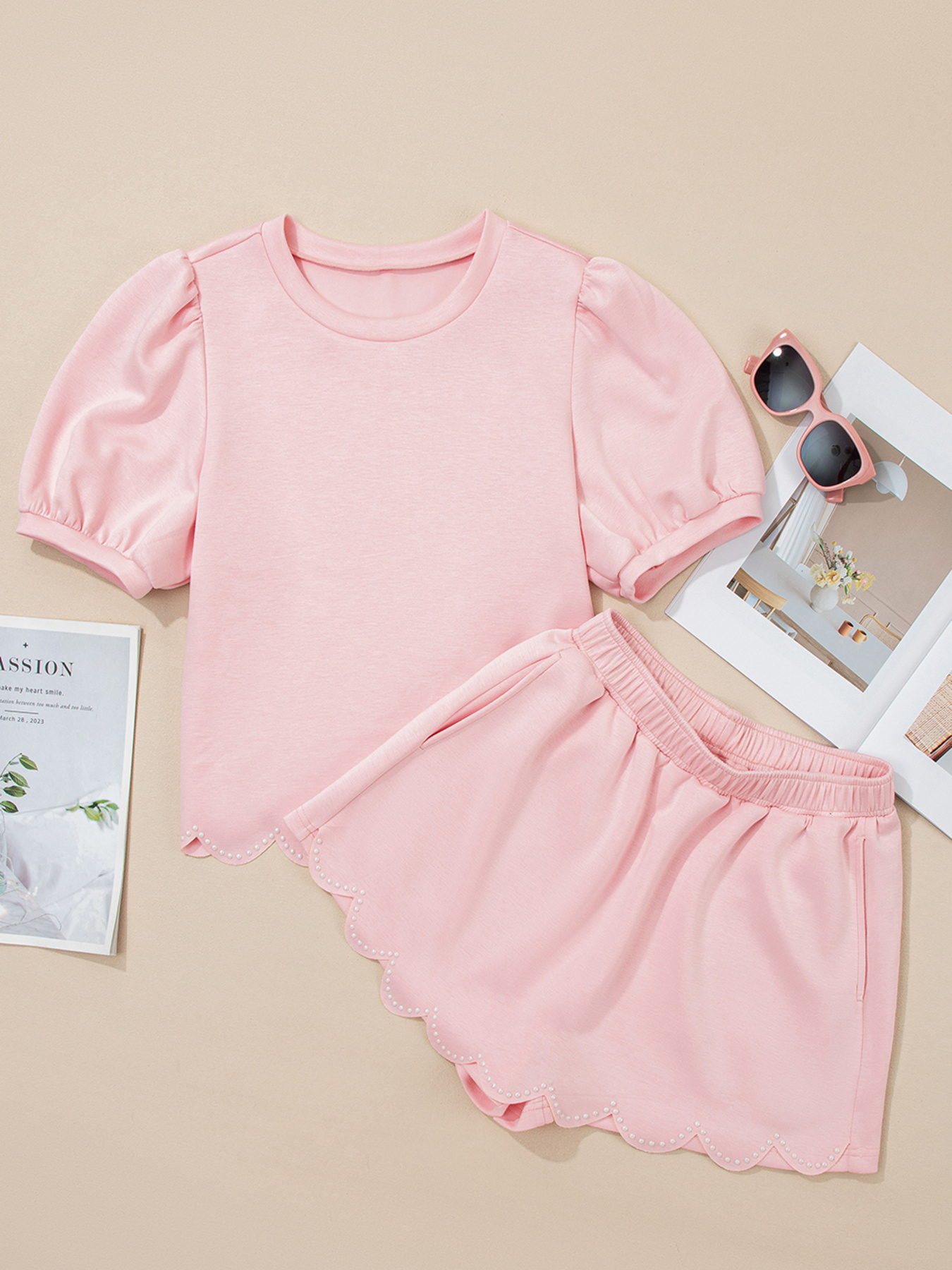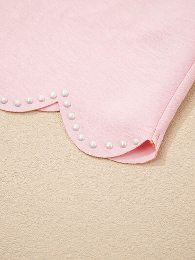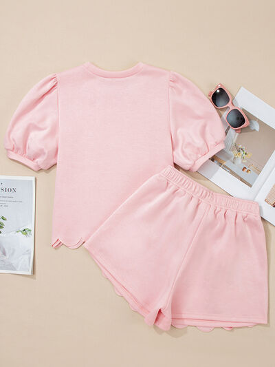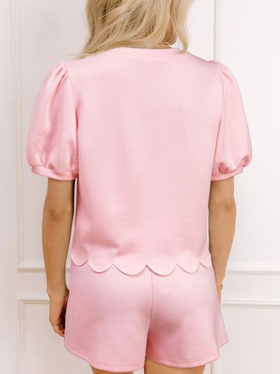 Puff Sleeve Pearl Embellished Scallop Trim Top and Skort Set