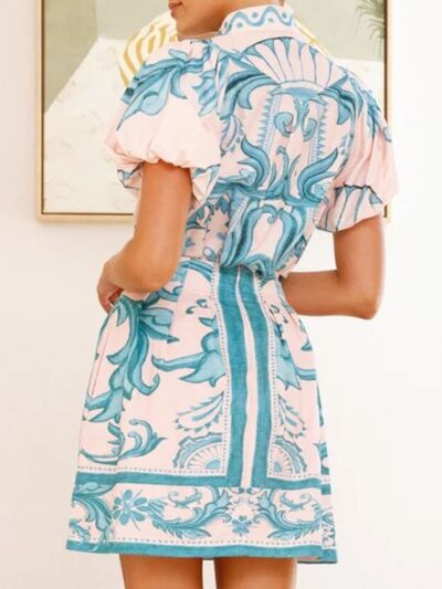 Puff Sleeve Printed Top and Zip Back Skirt Set