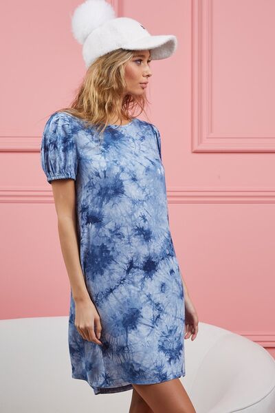 Puff Sleeve With Side Pockets Tie Dye Dress