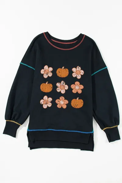 Pumpkin & Flower Graphic Long Sleeve Sweatshirt