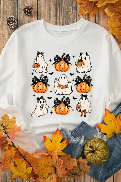 Pumpkin & Ghost Round Neck Long Sleeve Sweatshirt