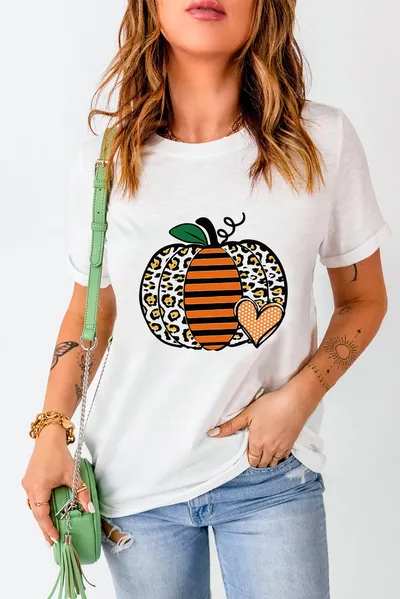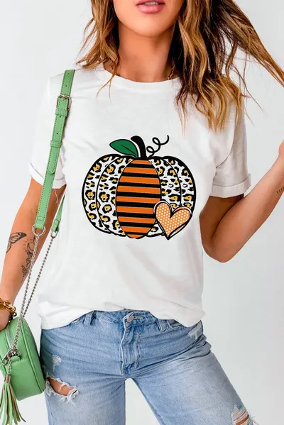 Pumpkin Graphic Round Neck Short Sleeve T-Shirt