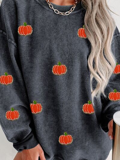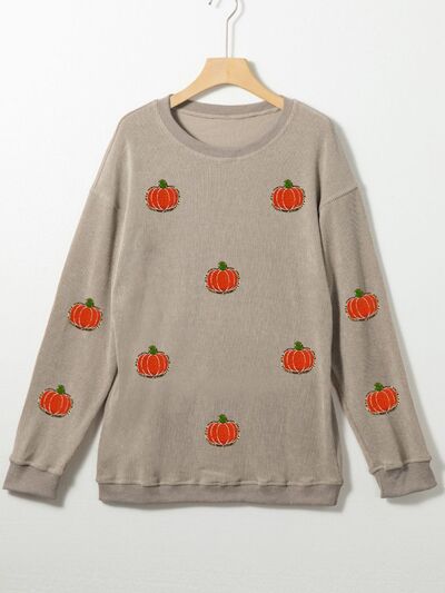 Pumpkin Round Neck Long Sleeve Sweatshirt