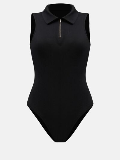 Quarter Zip Collared Neck Sleeveless Bodysuit