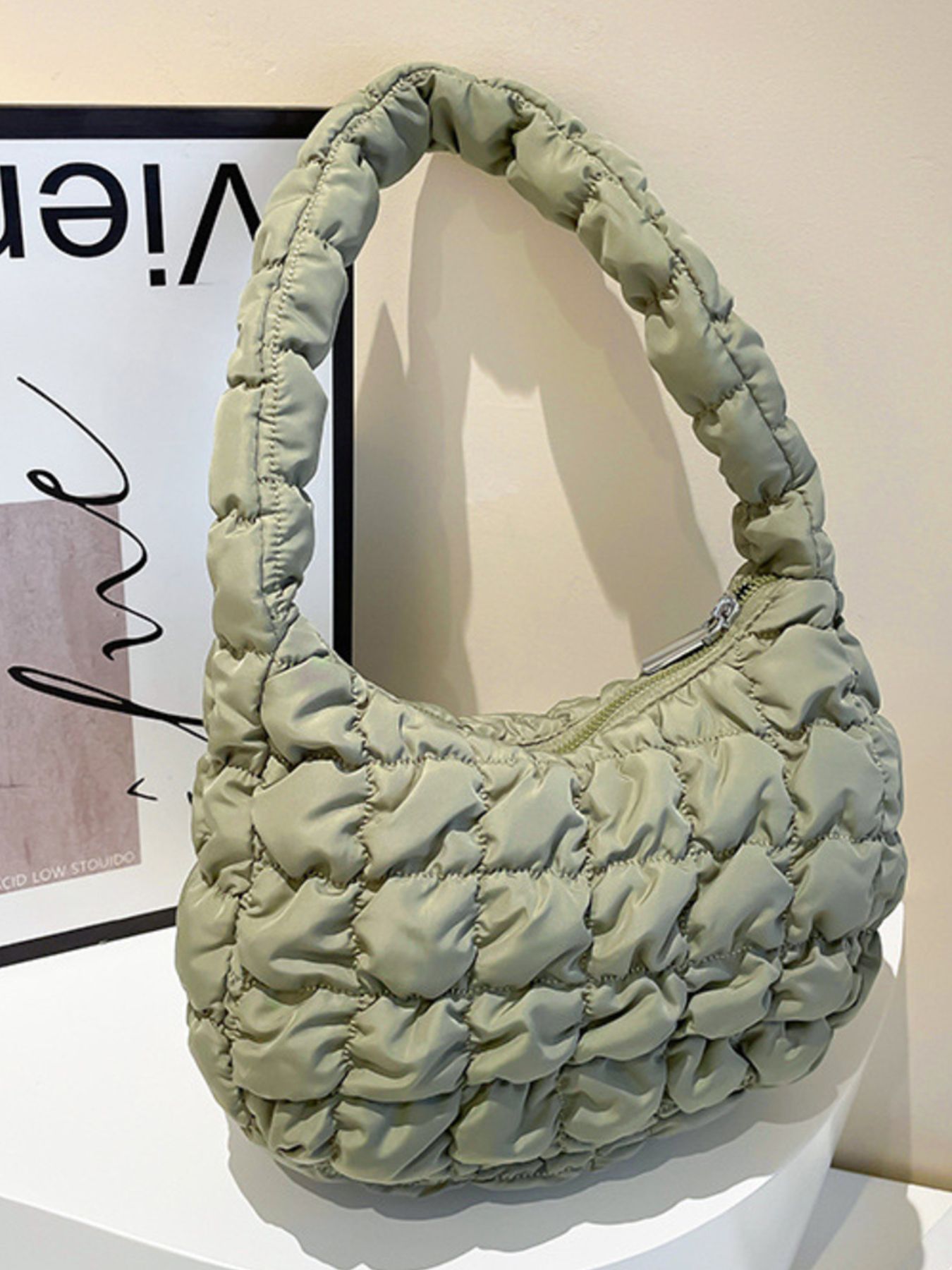 Quilted Ruched Shoulder Bag