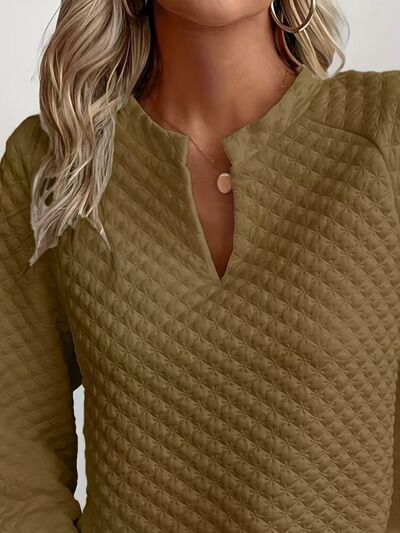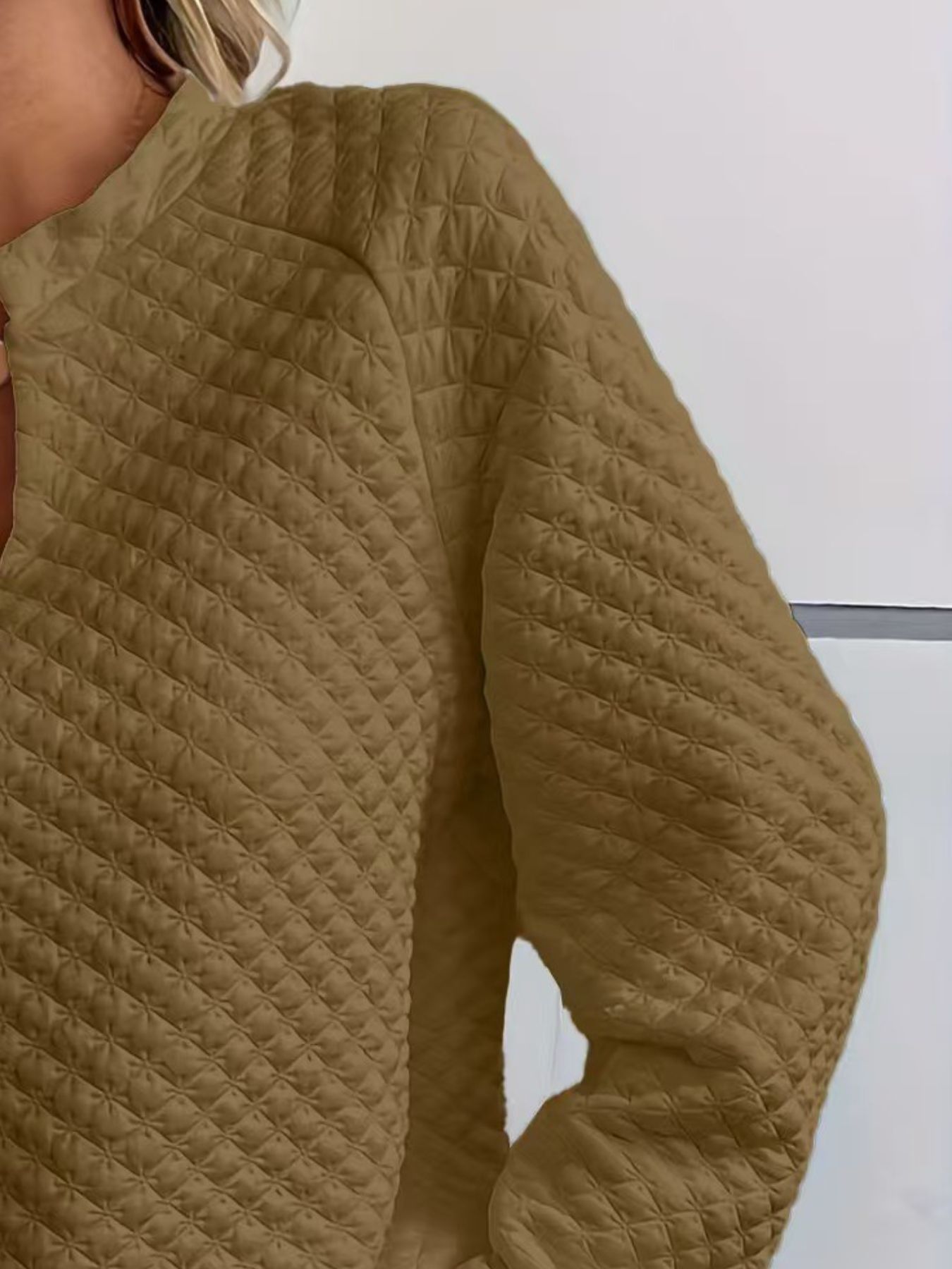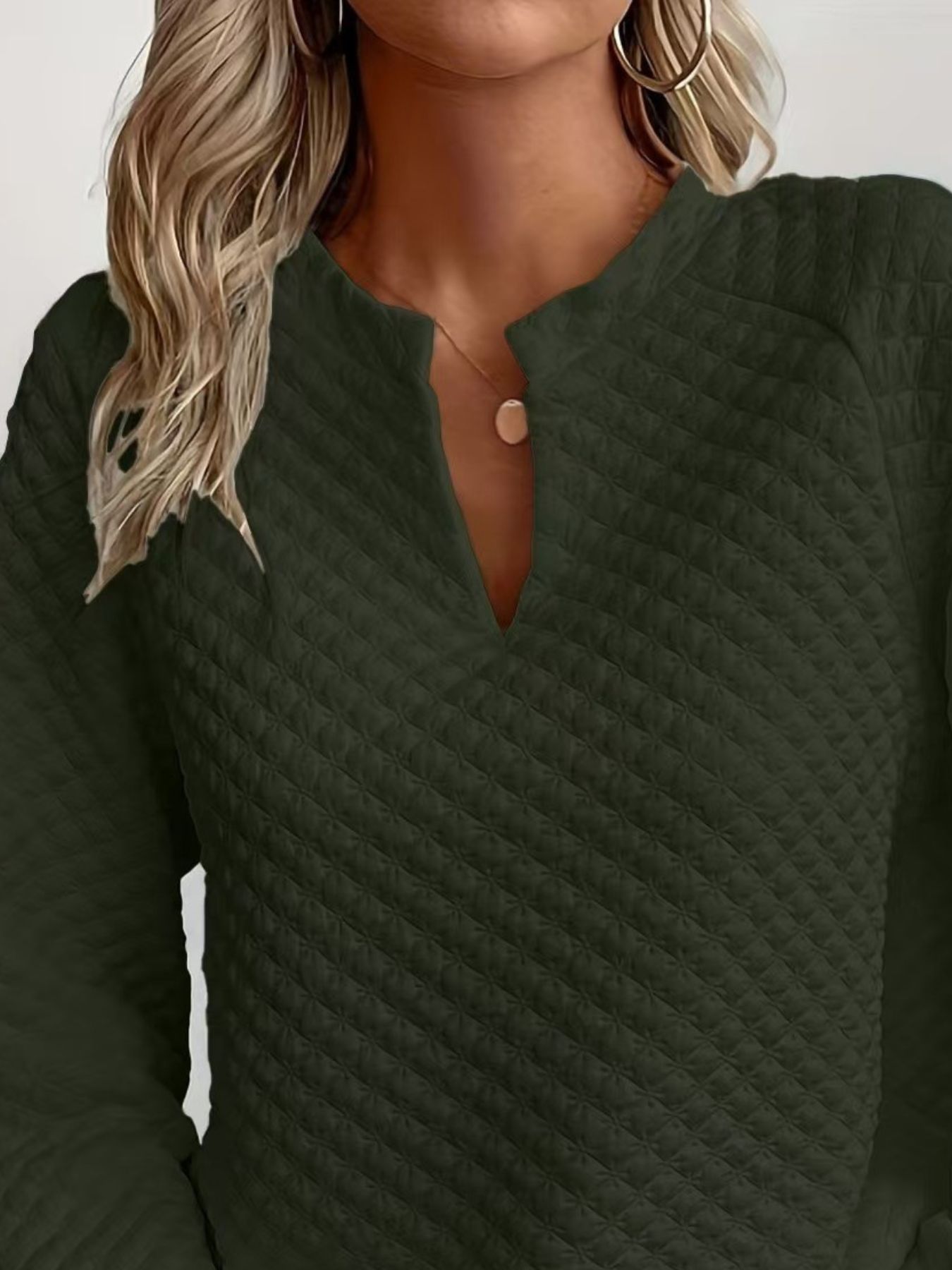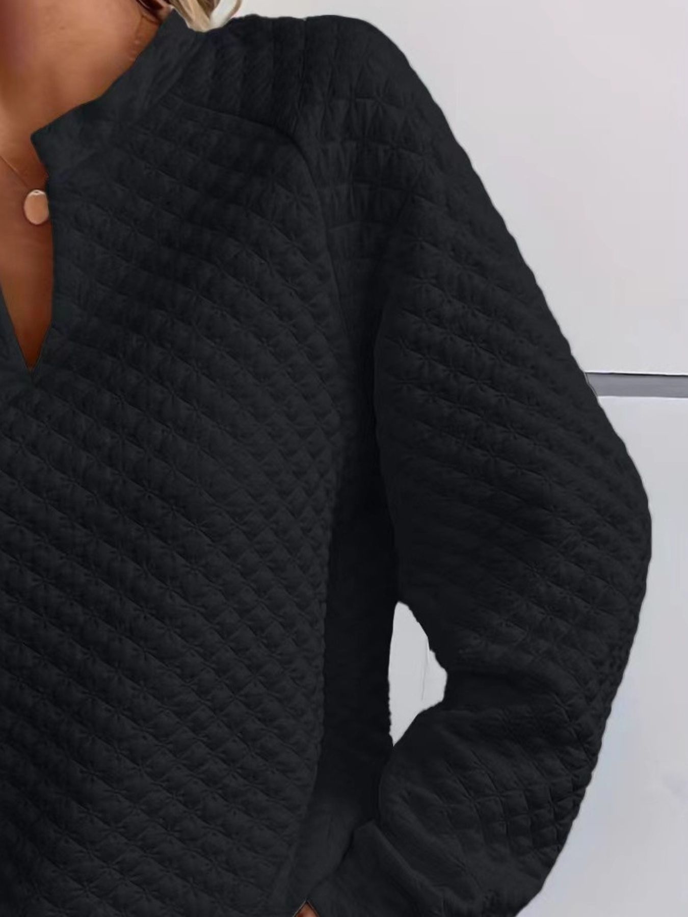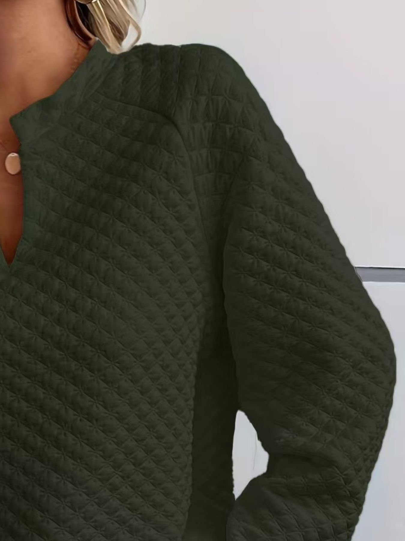 Quilted Texture Long Sleeve Sweatshirt with Notched Neck