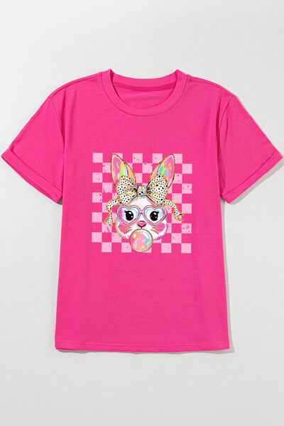 Rabbit Graphic Round Neck Short Sleeve T-Shirt