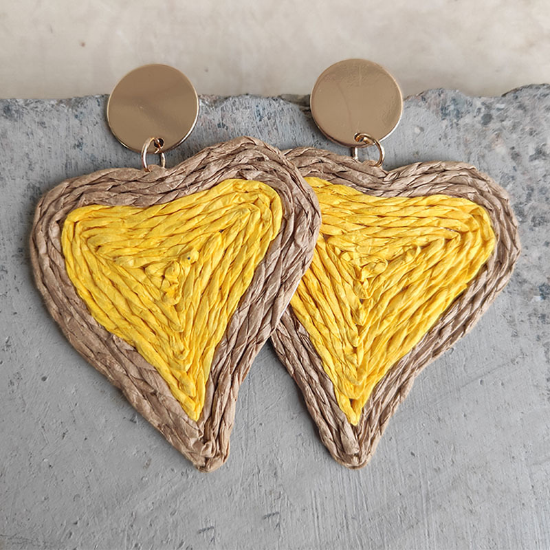 Raffia Grass Heart Teardrop Earrings