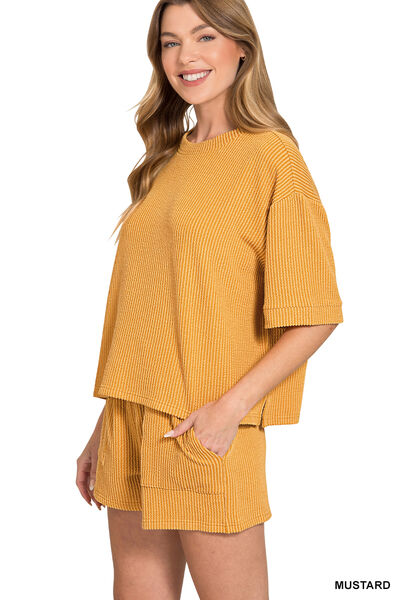 Raised Rib Short Sleeve Tee and Drawstring Shorts Set