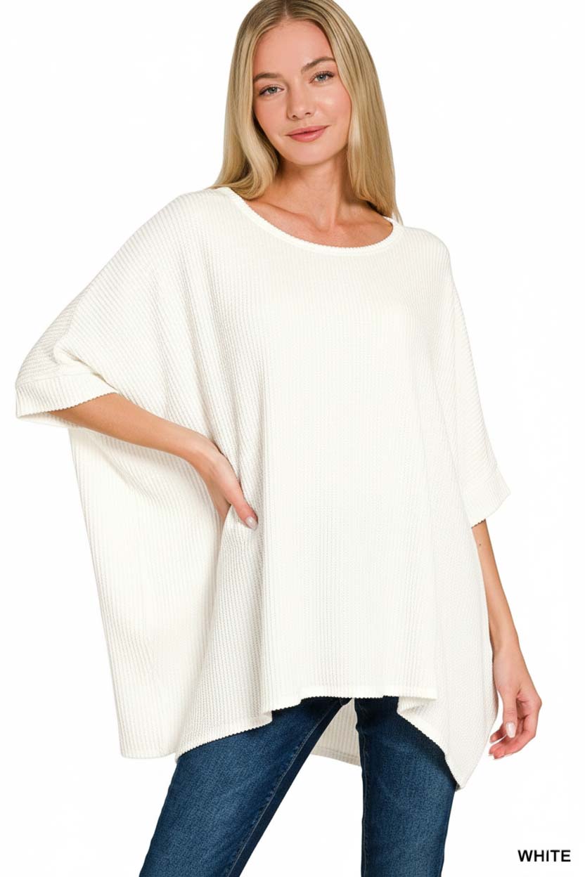 Raised Ribbed Bat Sleeve Top
