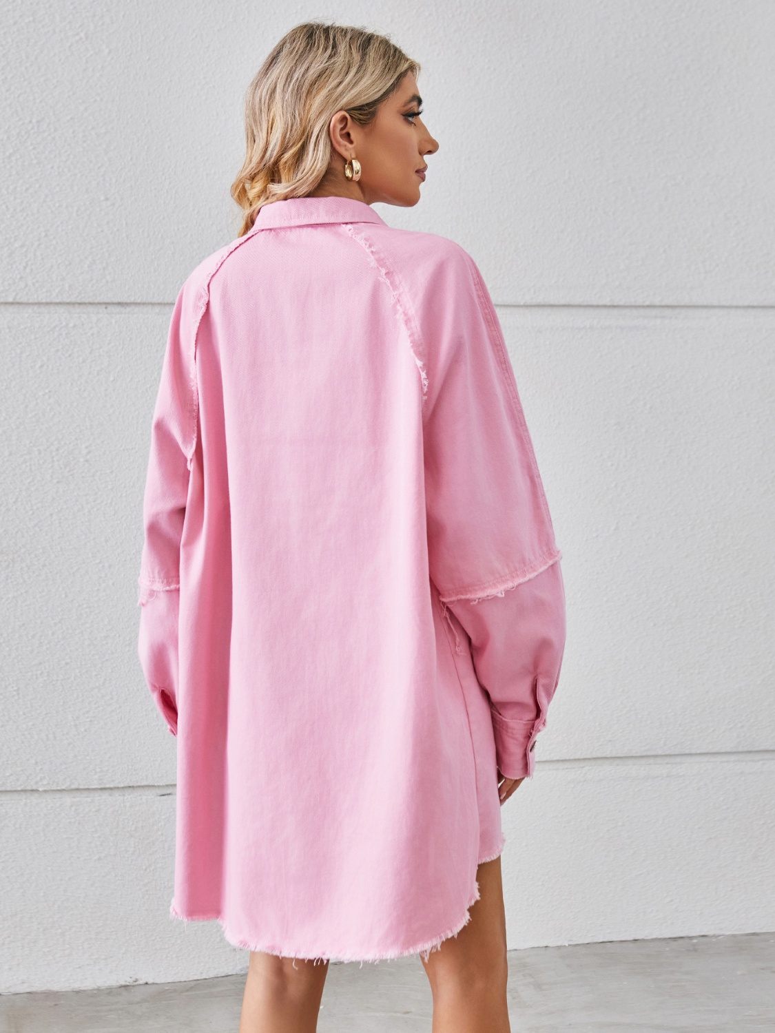 Raw Hem Button Up Denim Dress