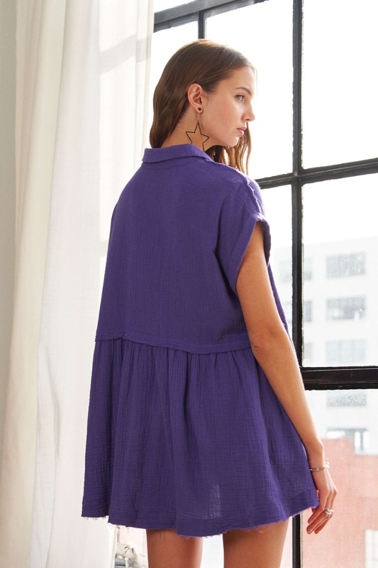 Raw Hem Collared Neck Button Down Shirt
