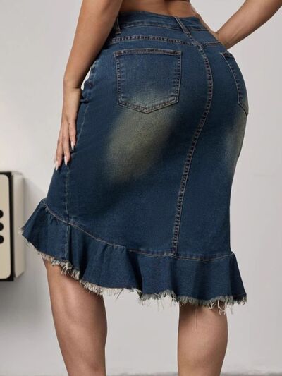 Raw Hem Mermaid Denim Skirt