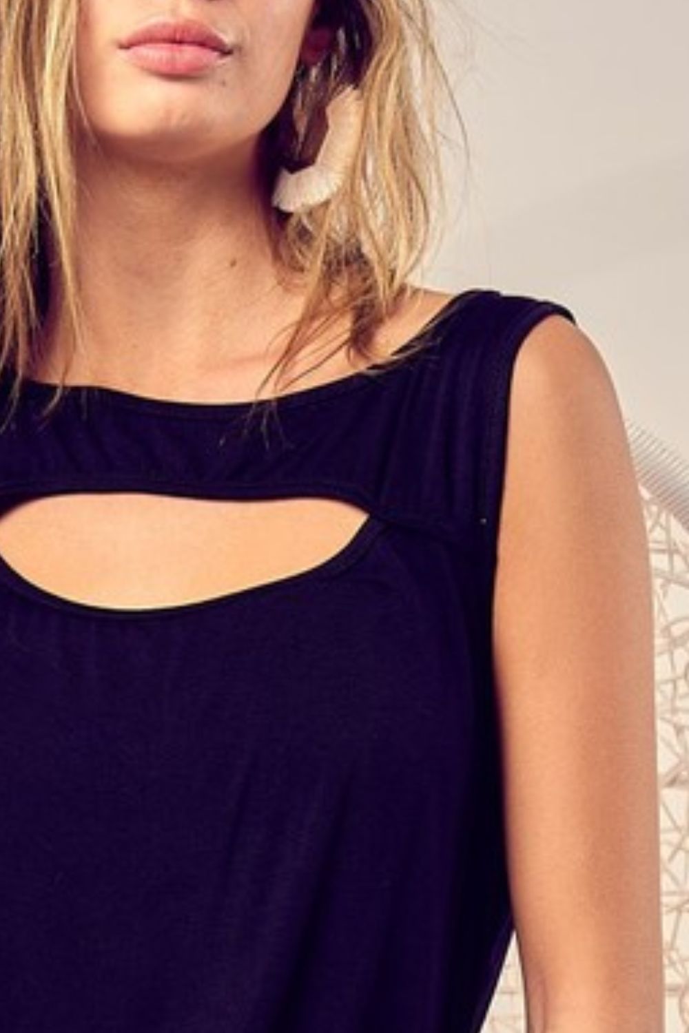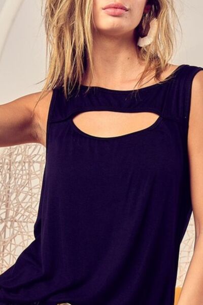 Rayon Span Knit With Cut Out Front Sleeveless Top