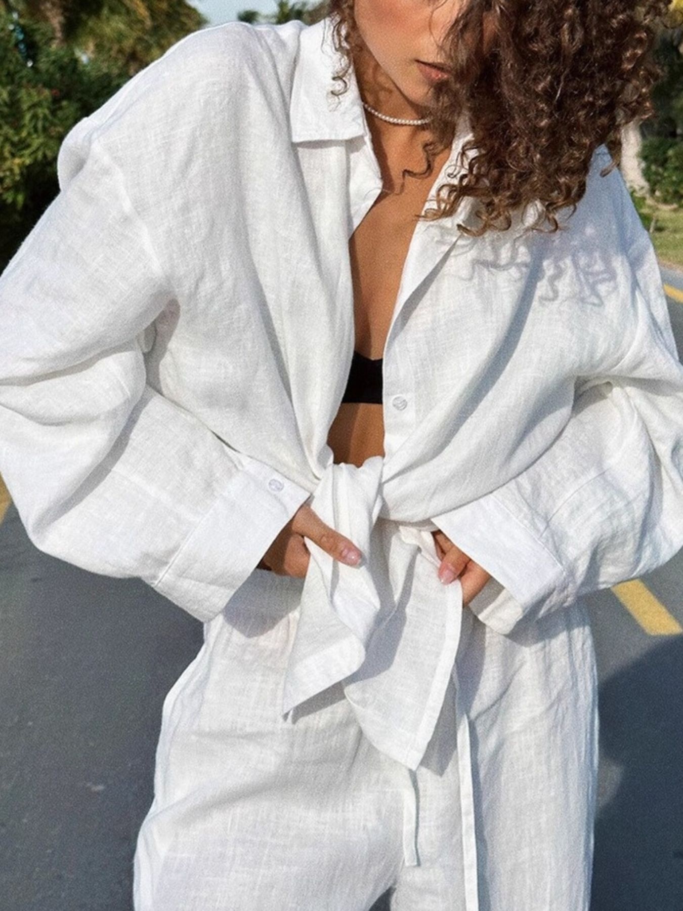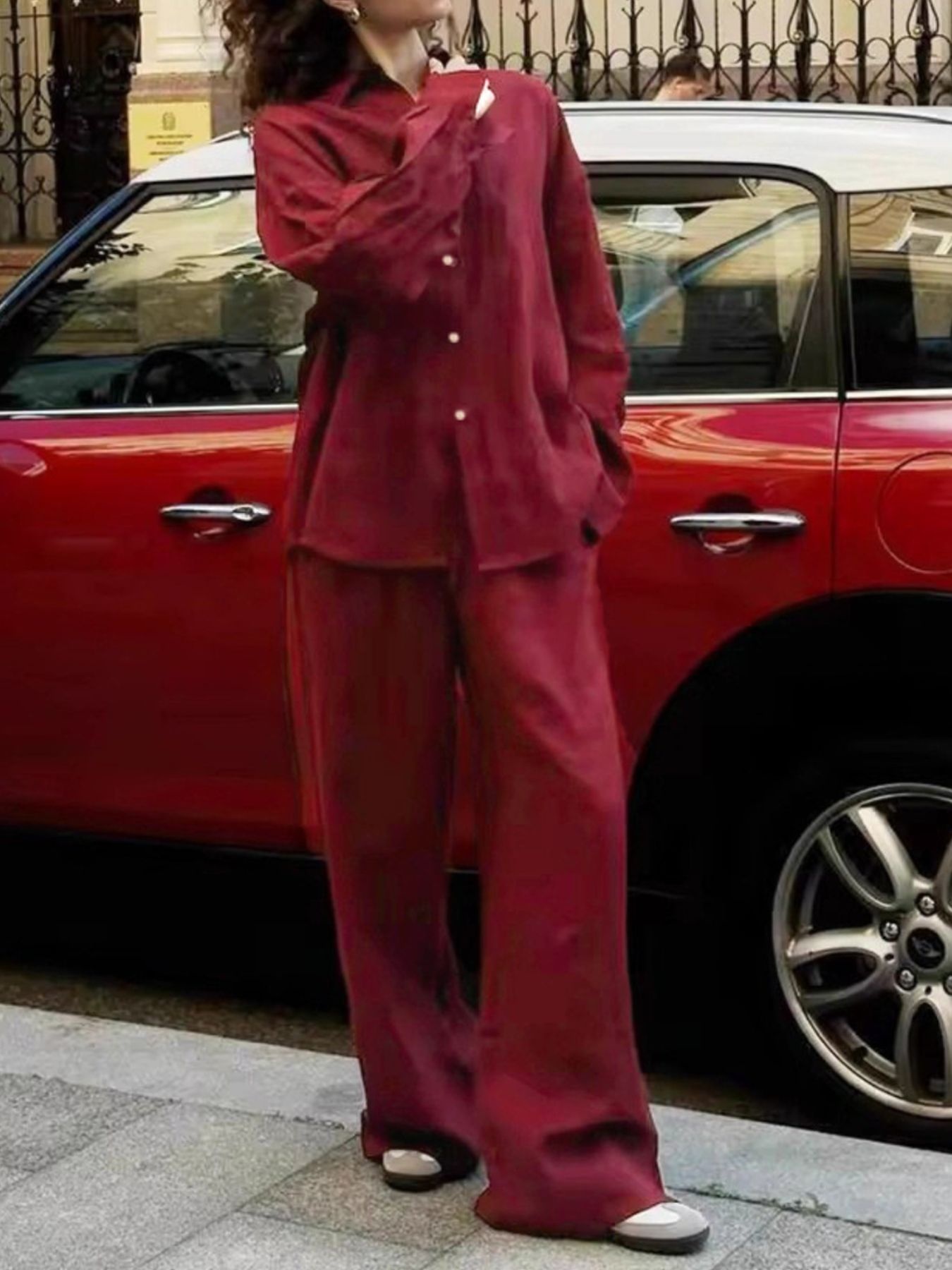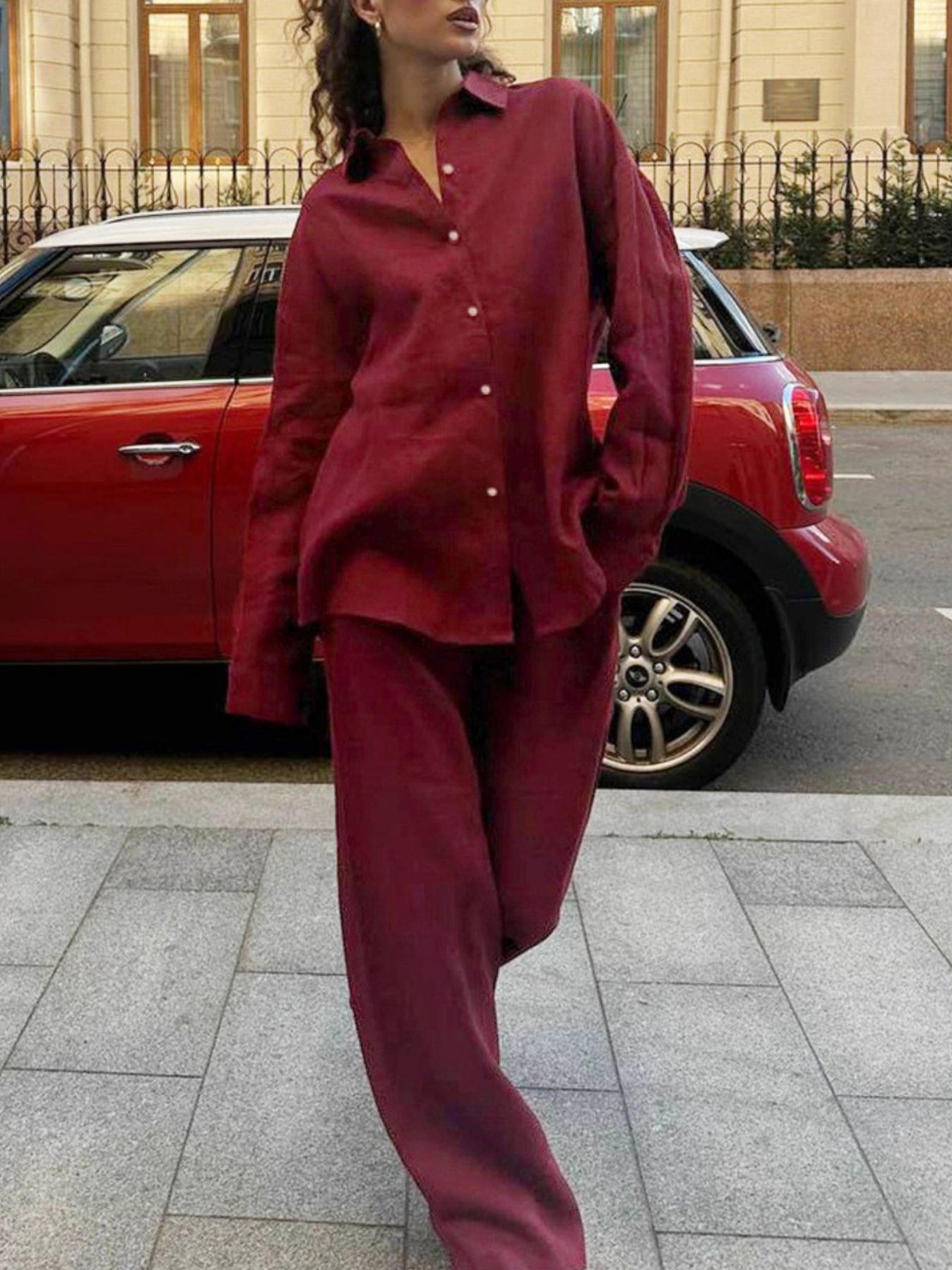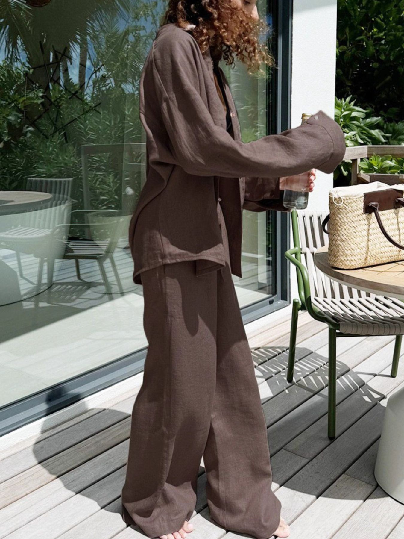 Relaxed Fit Button Up Shirt and Pants Two-Piece Set