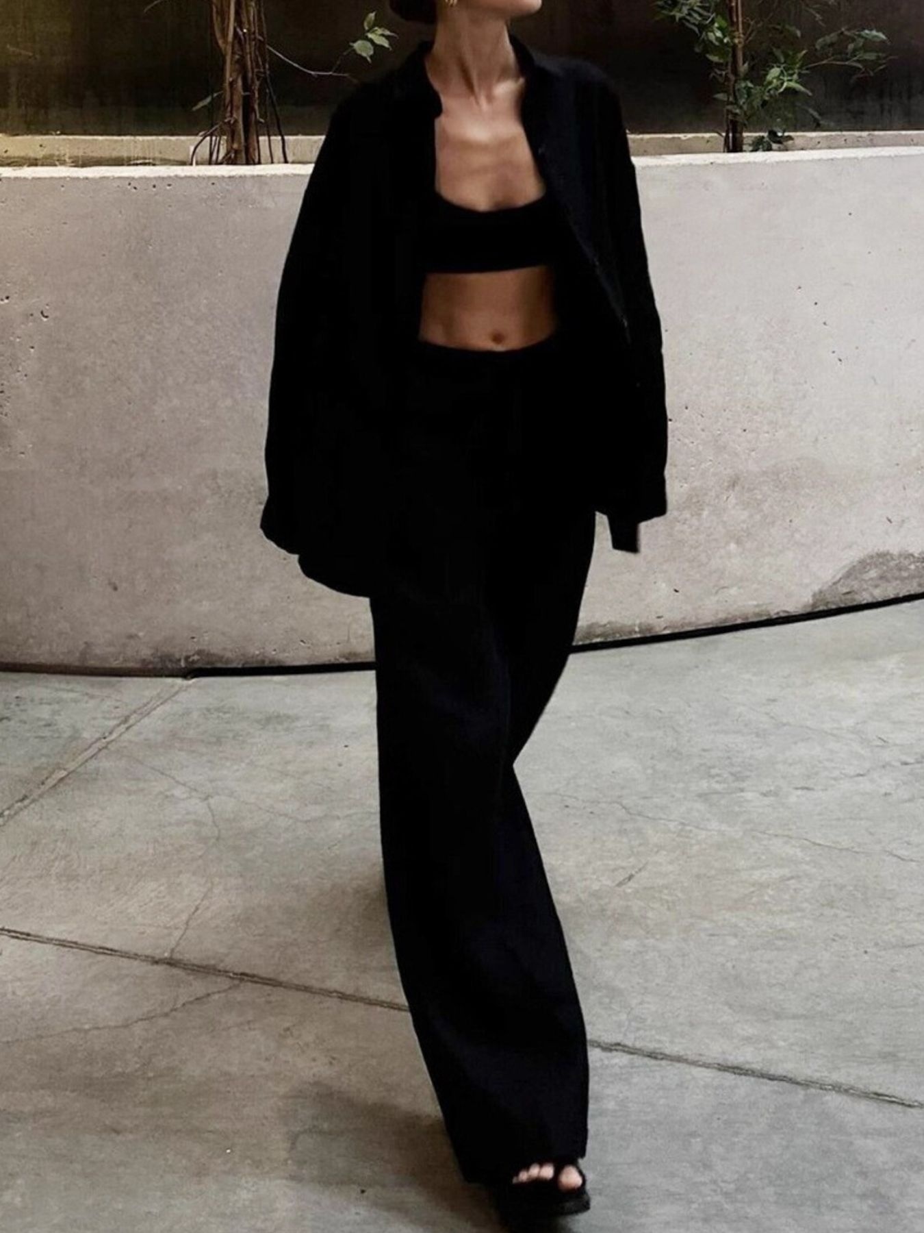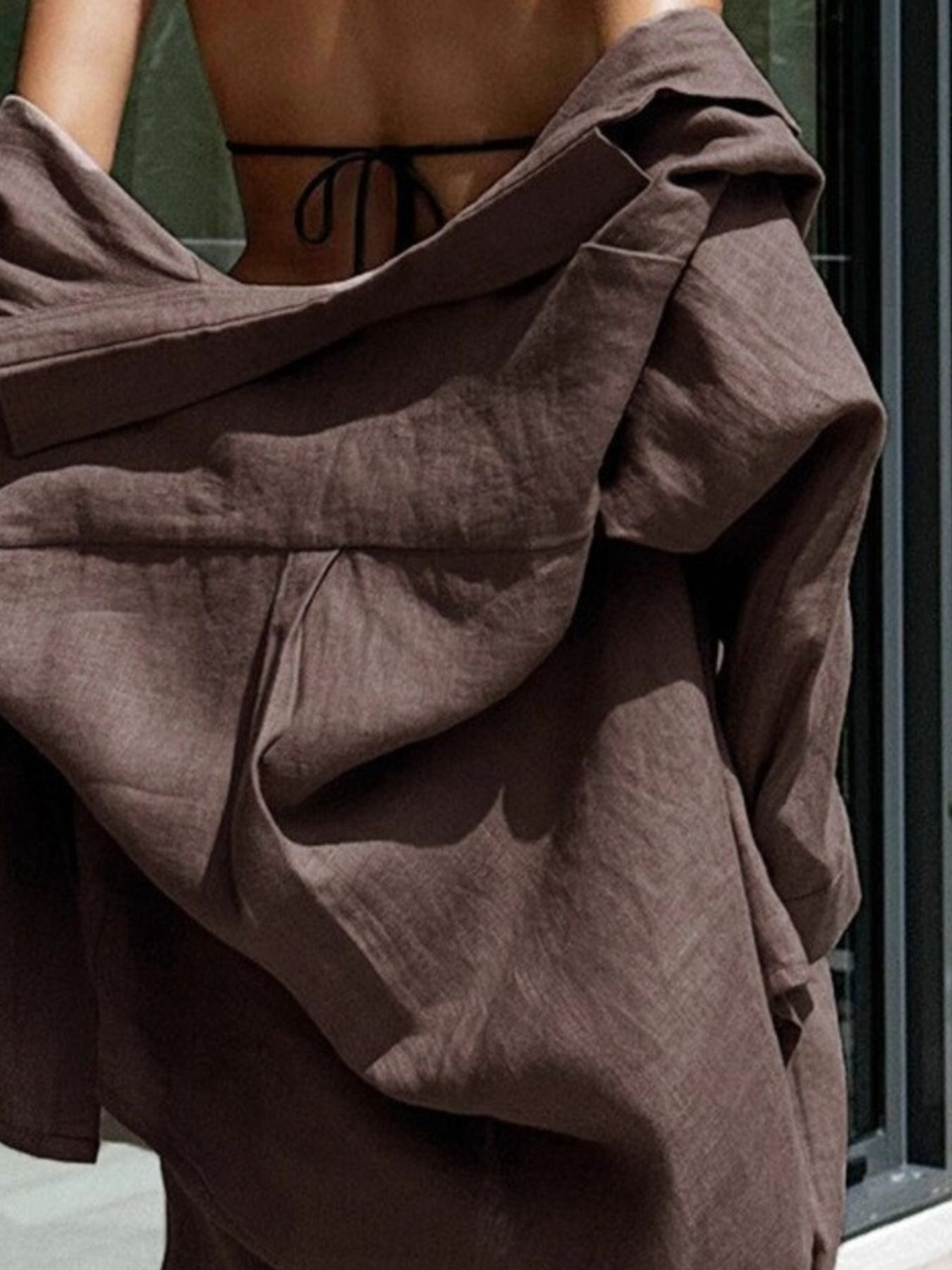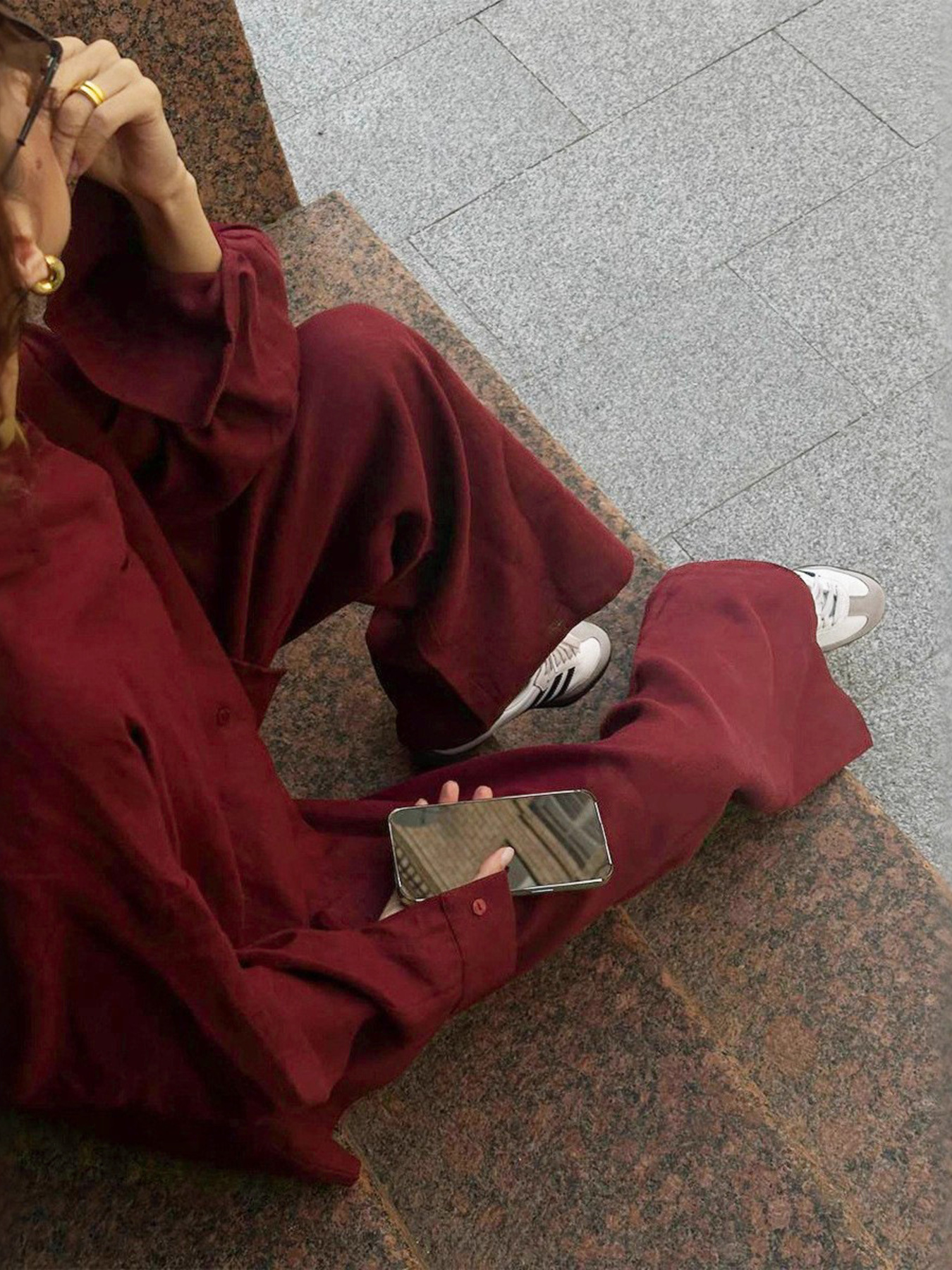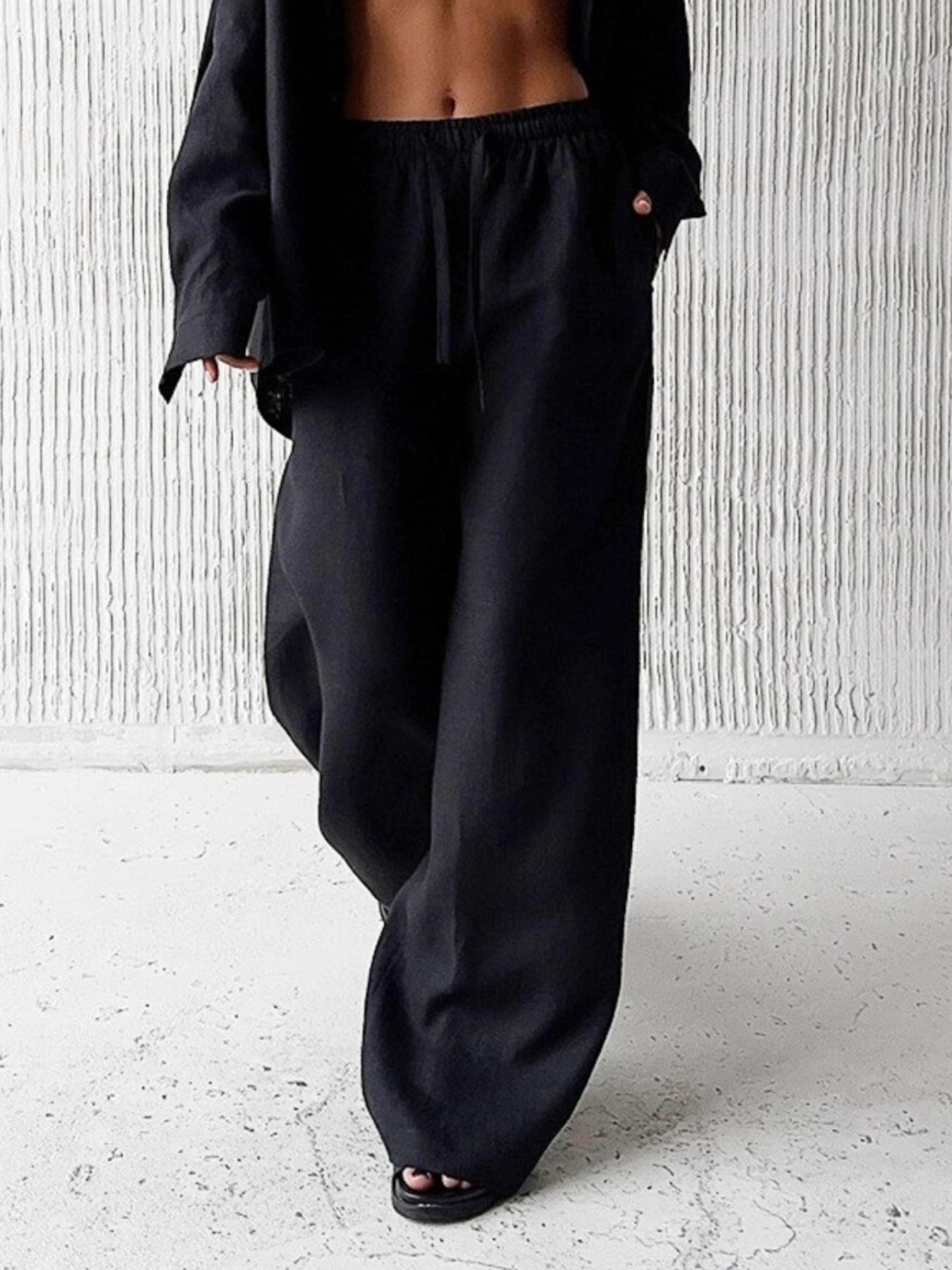 Relaxed Fit Button Up Shirt and Pants Two-Piece Set