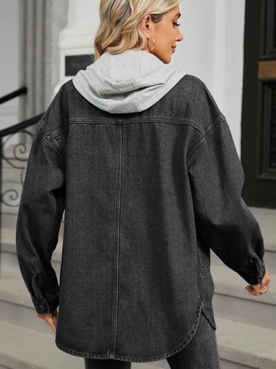 Removable Hood Button Up Long Sleeve Denim Jacket