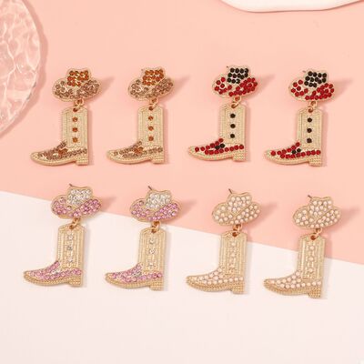 Rhinestone Cowboy Boot Dangle Earrings