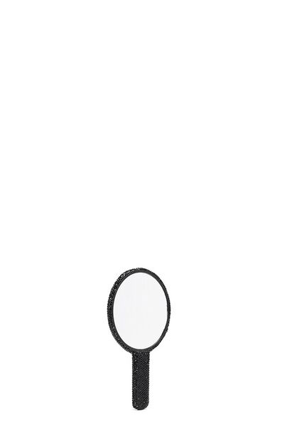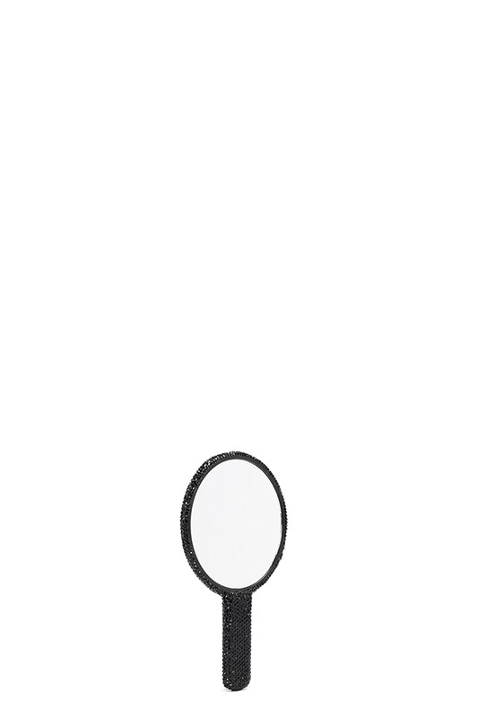 Rhinestone-Encrusted Plastic Round Hand Mirror