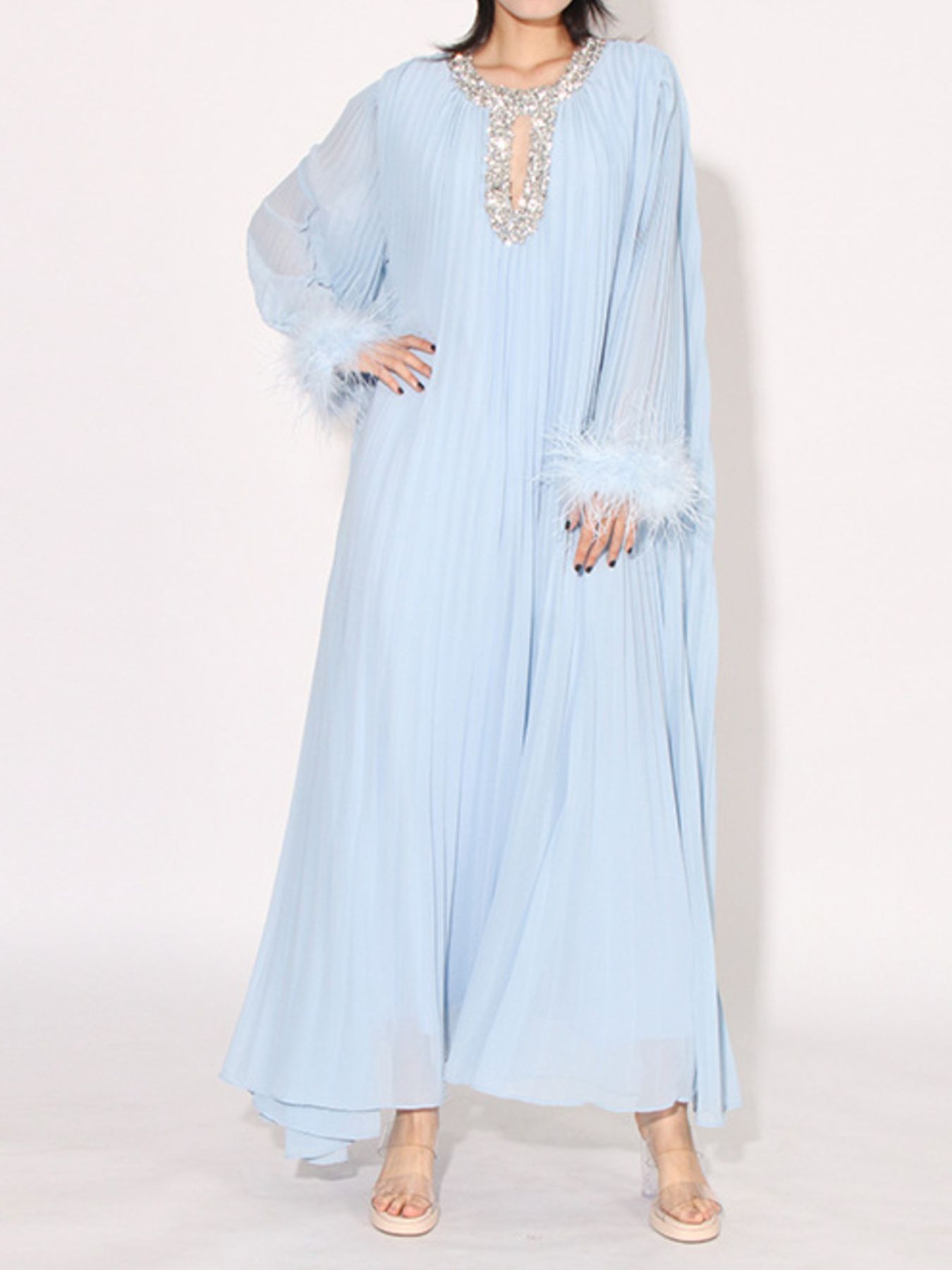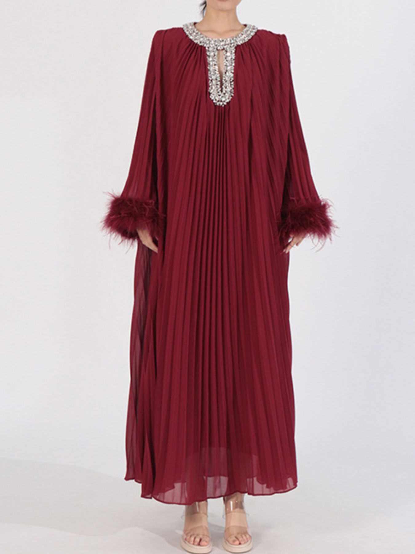 Rhinestone Long Sleeve Maxi Dress