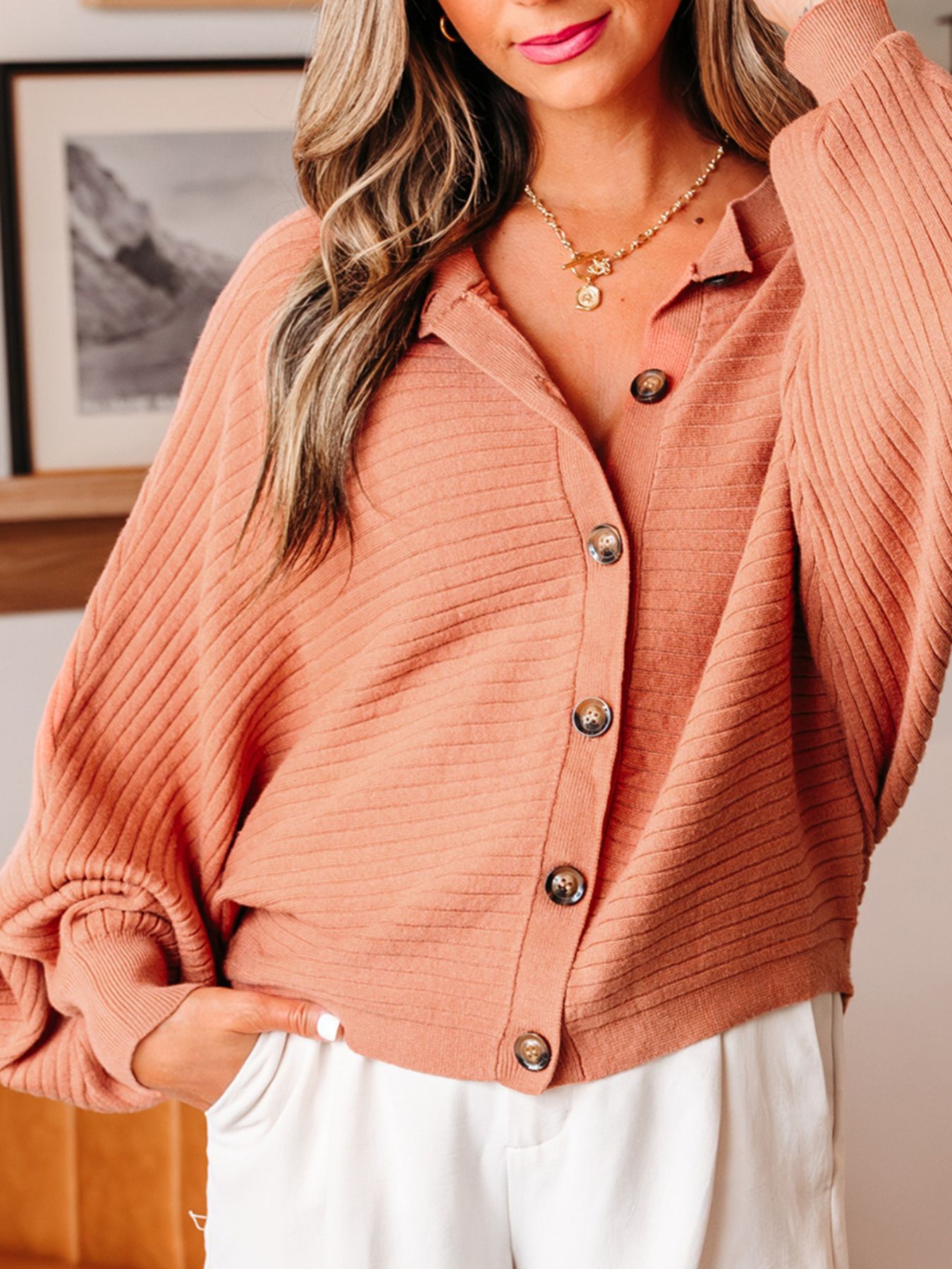 Rib Knit Button Front Dolman Sleeve Sweater Cardigan