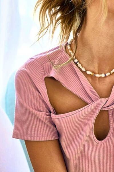 Rib Knit with Cut Out and Front Twist Detailed Top