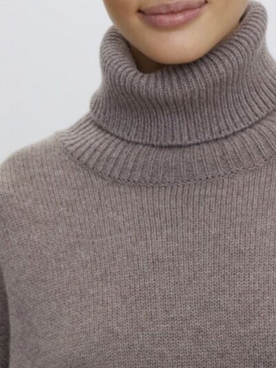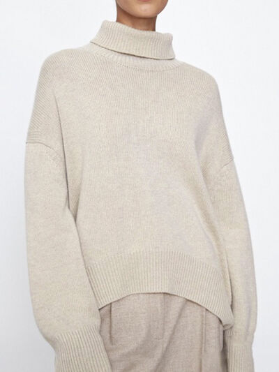Ribbed Detail Turtleneck Dropped Shoulder Sweater