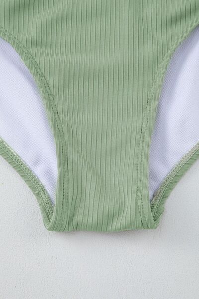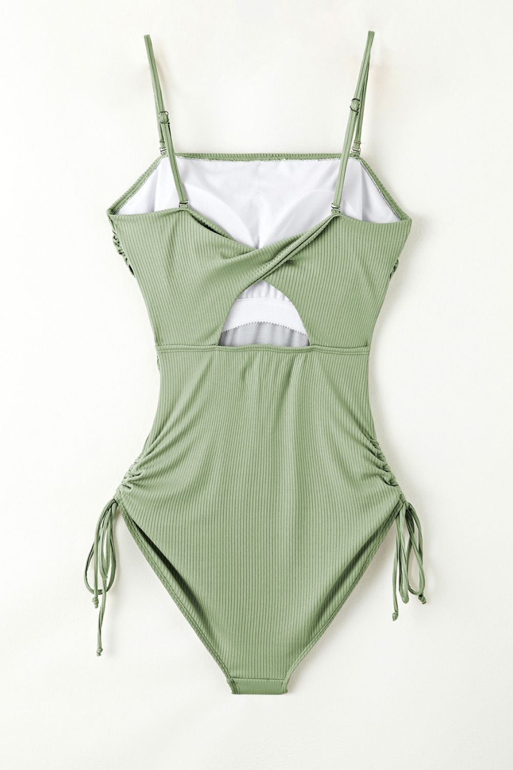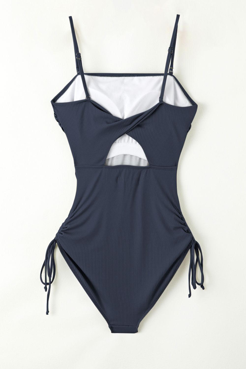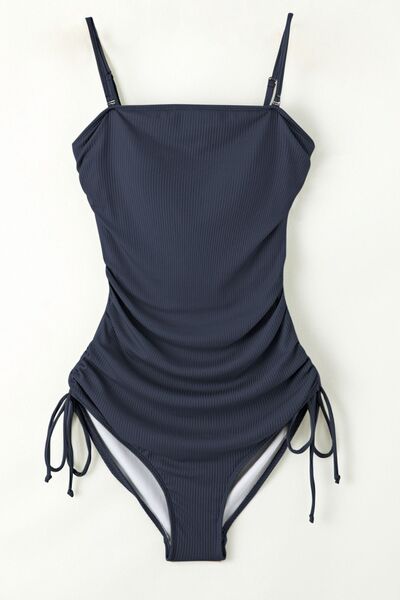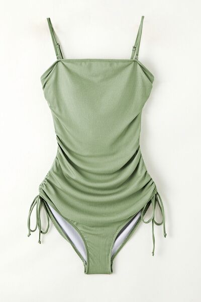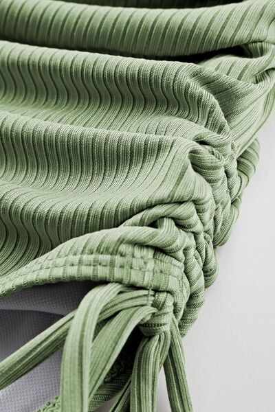 Ribbed Drawstring Sides Cutout One Piece Swimsuit