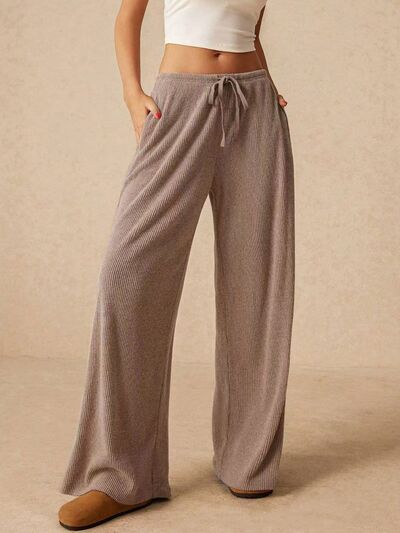 Ribbed Drawstring Wide Leg Pants