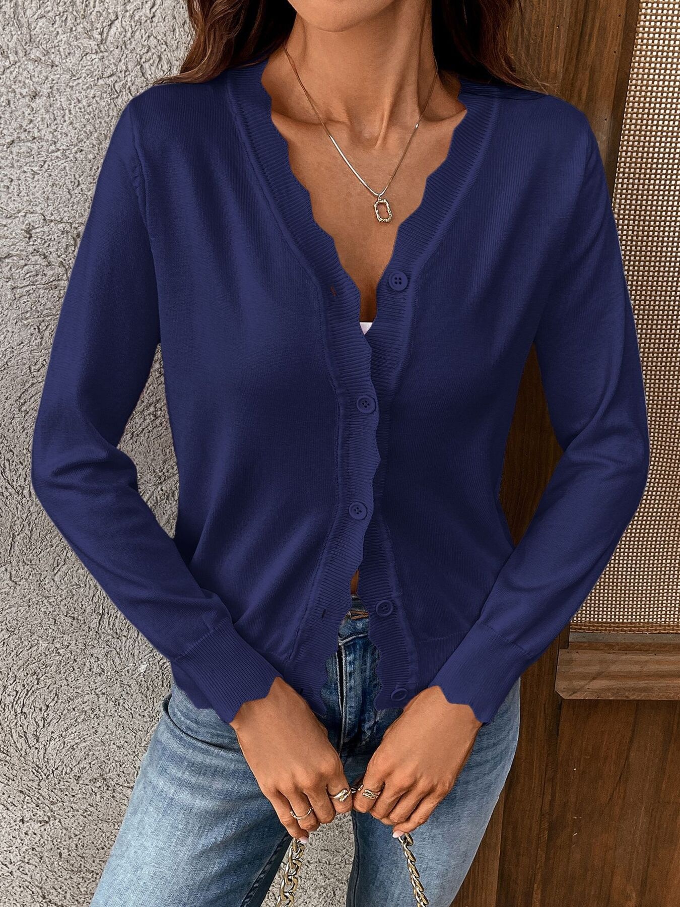 Ribbed Edge Button-Up Knit Cardigan