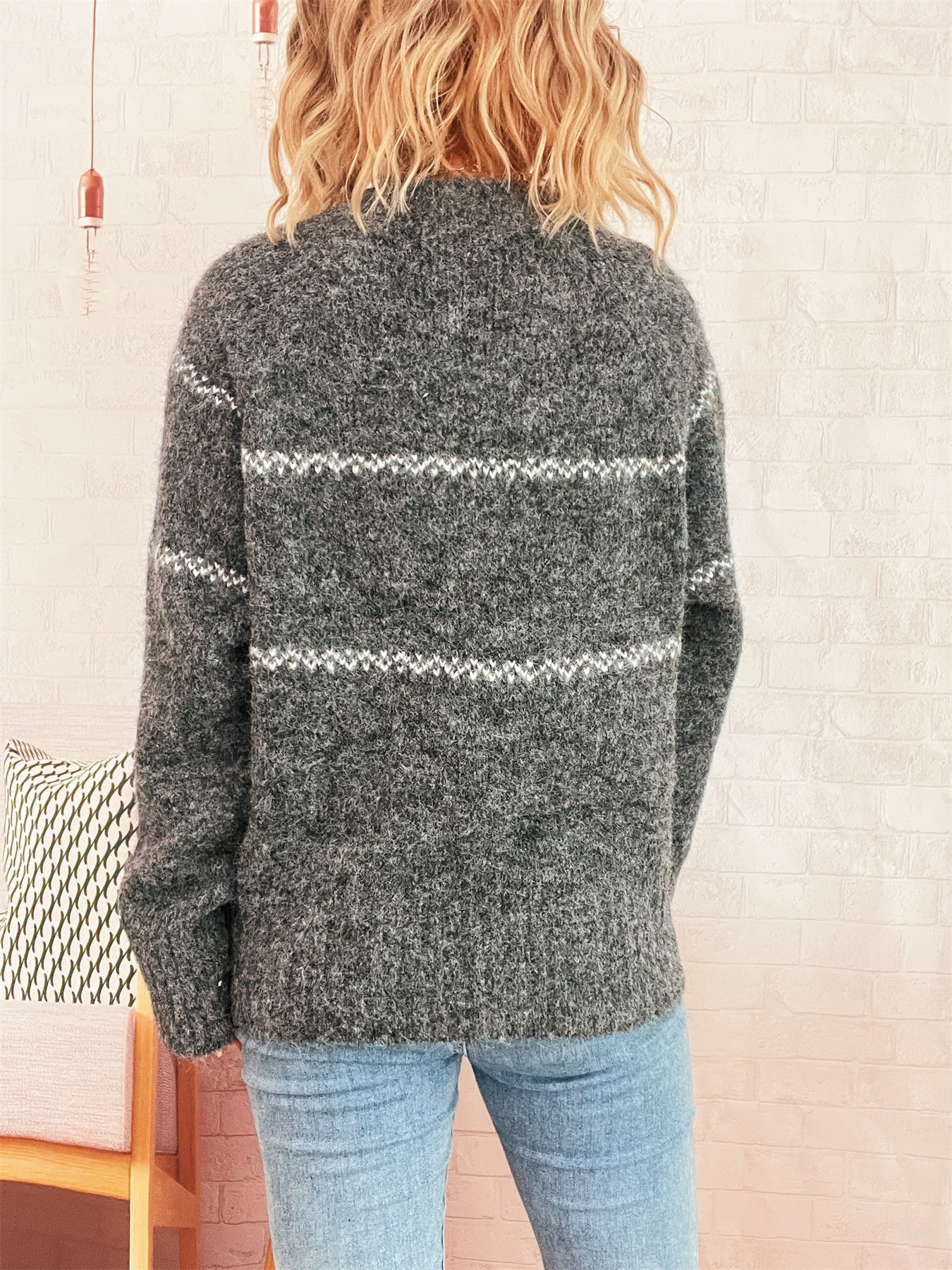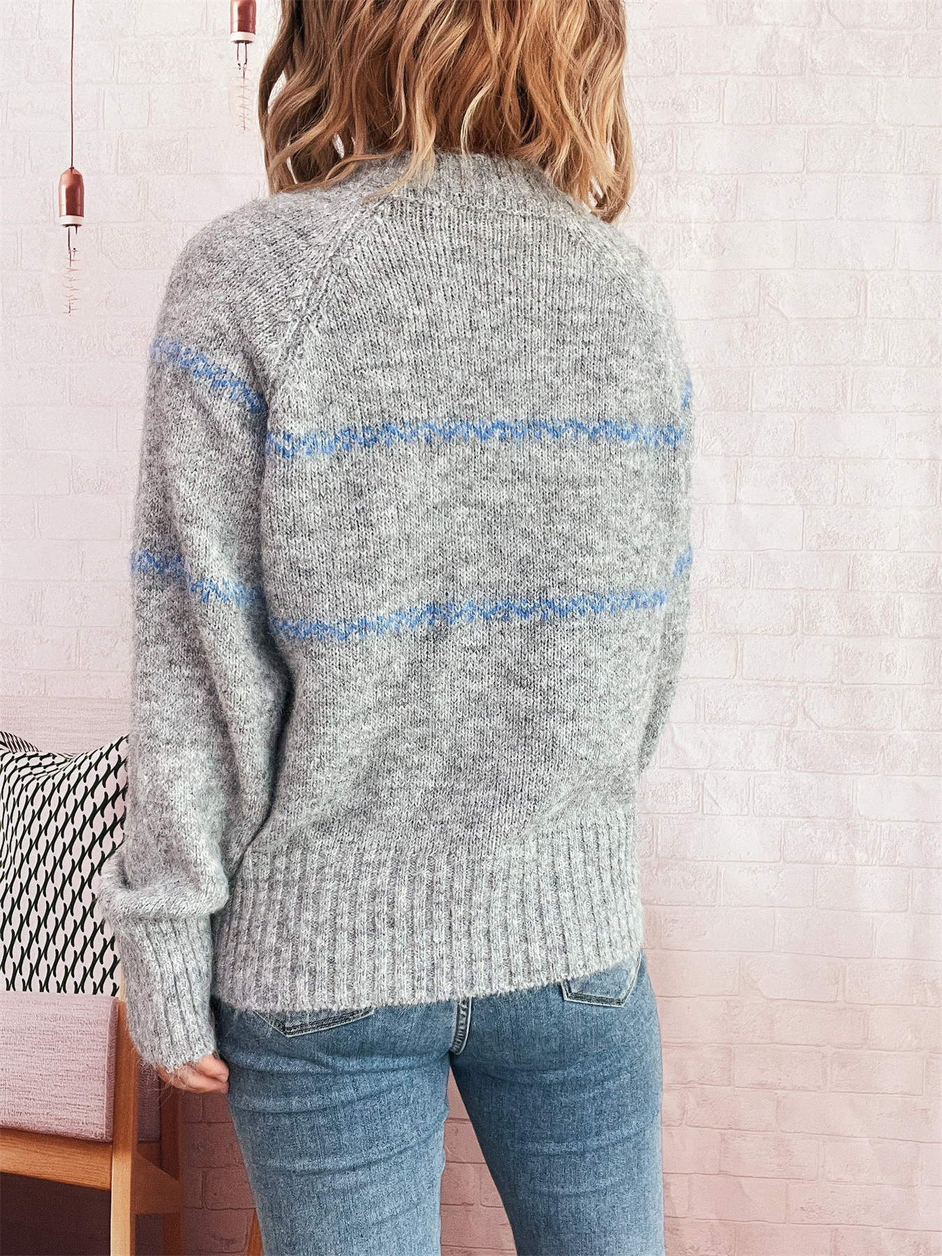 Ribbed Hem Flower Long Sleeve Sweater