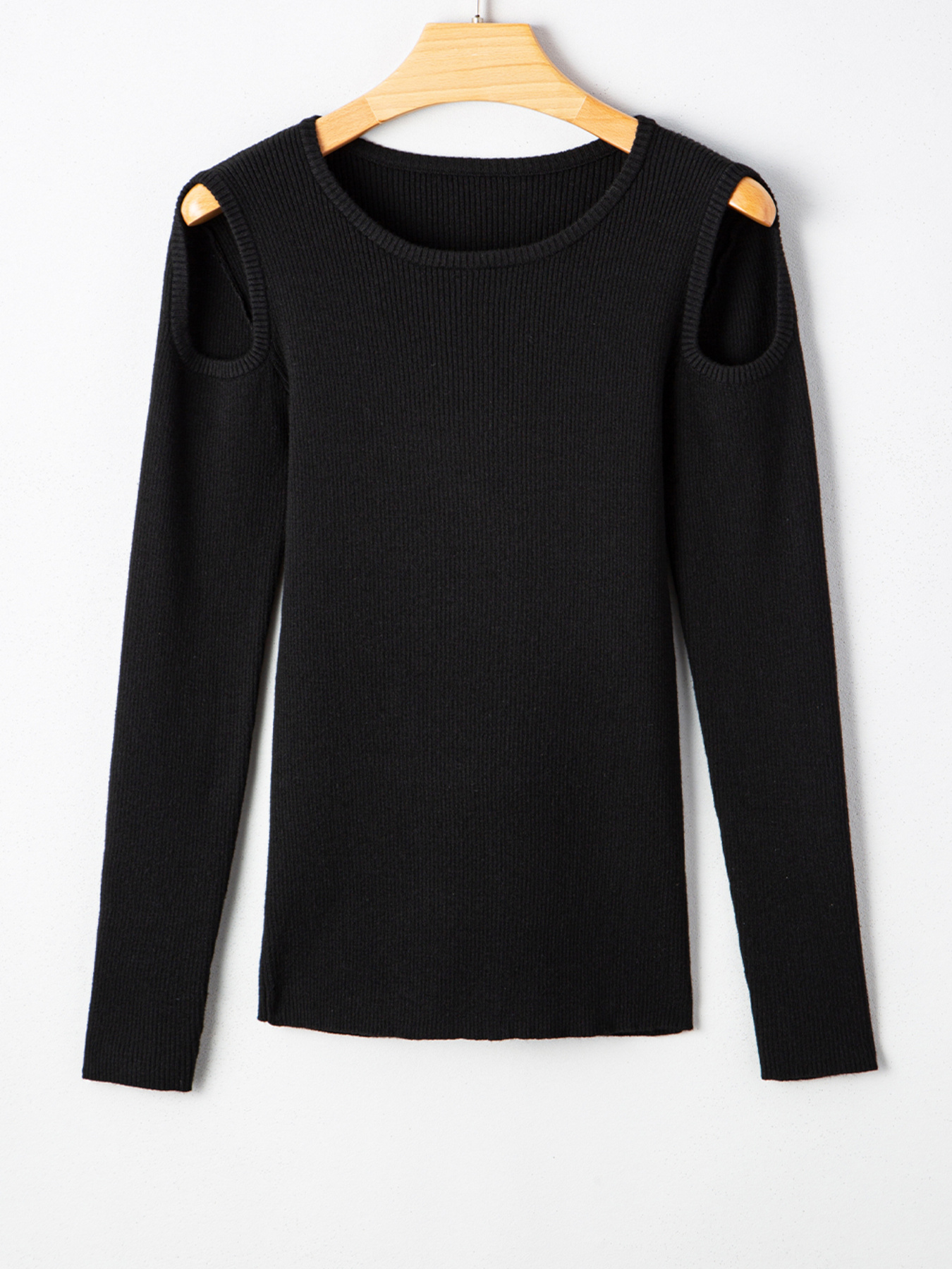 Ribbed Knit Cold Shoulder Sweater