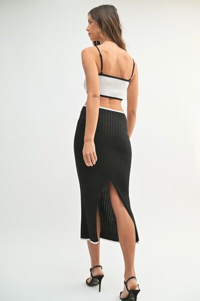 Ribbed Knit Color Block Cutout Midi Dress