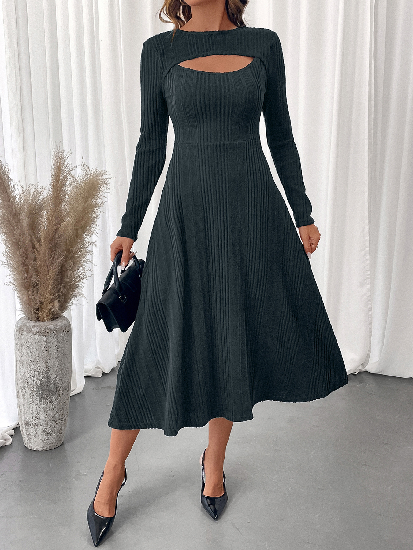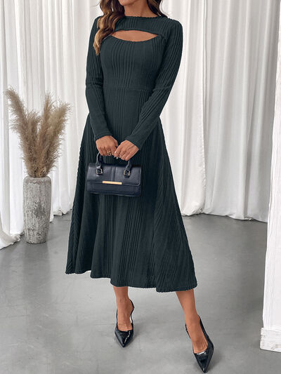 Ribbed Knit Cutout Long Sleeve Midi Dress